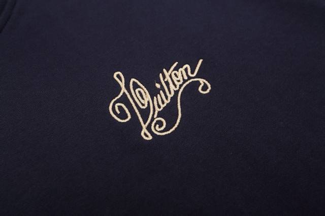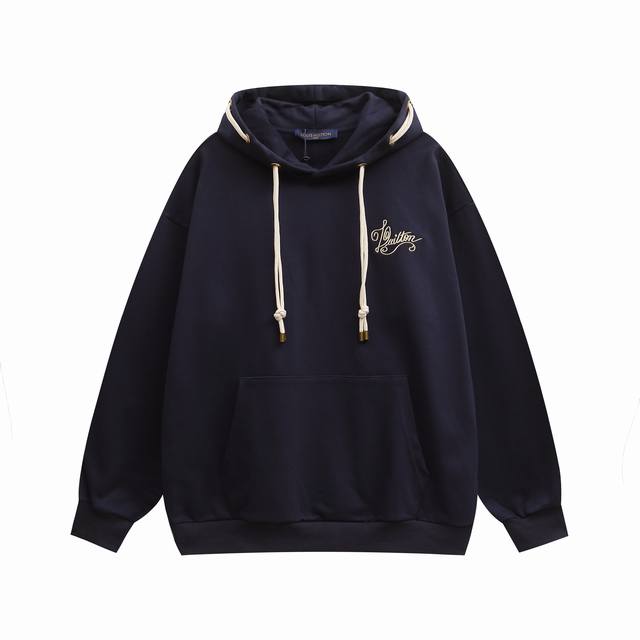 9015# Ddd 380g 100% Cotton Terry Cloth Sweatshirt Ddd Custom Blue Fabric with Embroidered Antique Bronze Letters and Large Eyelets Sizes SML XL DDD
