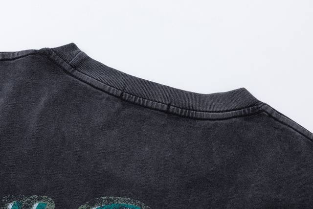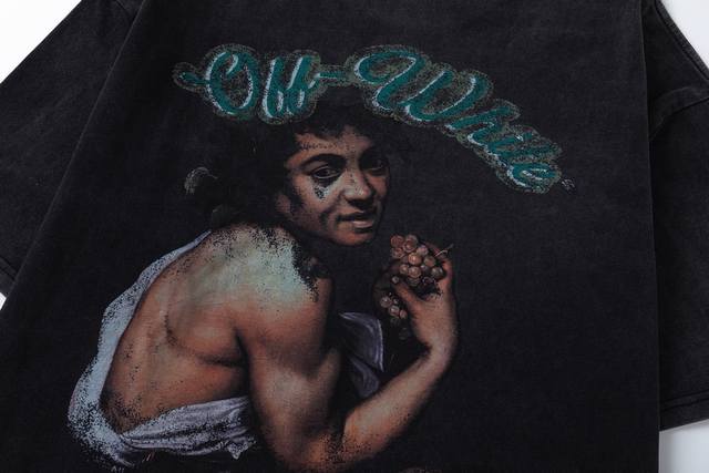 9101#. Off-White 2025 New Oil Painting Portrait Short-Sleeve T-Shirt (Washed) Color: Black Sizes: S, M, L, XL