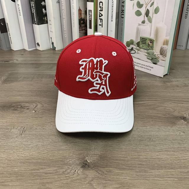 9868##Amiri Color Block Baseball Cap, Hard Top, Duckbill Cap, Color Block Letter Embroidery Hat, Face-Slimming Casual Cap# Ddd Adjustable Ddd Colors: Red, Black, Blue DDD