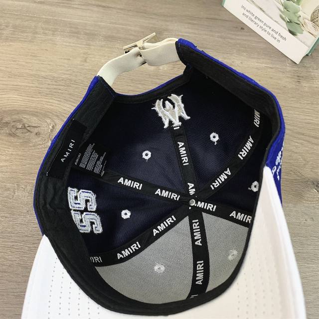 9868##Amiri Color Block Baseball Cap, Hard Top, Duckbill Cap, Color Block Letter