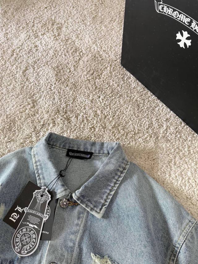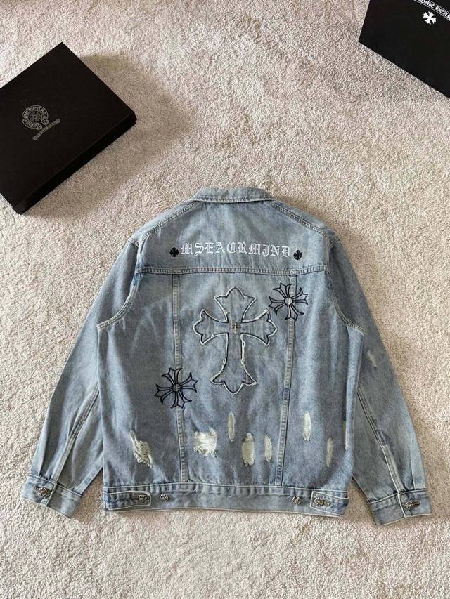 A highly popular distressed washed denim jacket from Crocs, featuring 3D embroidered cross patches on the front and back, exuding a high-end feel. This super popular item is here! The perfect piece for this weather. Cool oversized style with a classic 3D embroidered cross logo on the back, generous and unisex, full of personality, understated yet incredibly versatile! Made from heavyweight 100% denim cotton with a thick yarn and heavy washing process, ensuring a crisp and sturdy fit while remaining soft, comfortable, and breathable against the skin. The high-density embroidery of Sanskrit letters is exquisite. The casual, loose fit is relaxed and effortless. Unisex, it pairs well with sweatpants and wide-leg pants for a trendy look. Most importantly, it's incredibly versatile. Unisex. Size: M-3XL. Color: Black, Blue. Style Number: 3065.
