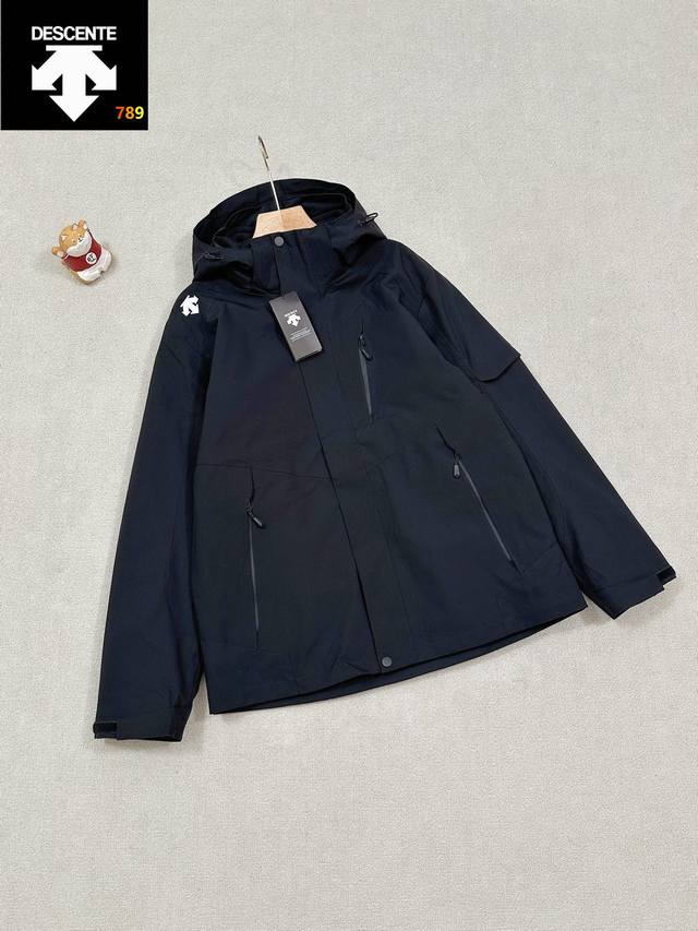 A major release! Export order to North America. Descente Men's Multi-Pocket Windproof and Waterproof 3-in-1 Workwear Jacket. The 3-in-1 liner is removable, featuring a functional outdoor windproof and rainproof jacket with a heat-retaining fleece liner. Suitable for spring, autumn, and winter! Its warmth is comparable to a 300g down jacket! Stylish and designed, the jacket uses a high-tech windproof and rainproof fabric that is breathable, durable, heat-retaining, and tear-resistant. It effectively blocks rain and snow, reducing discomfort from dampness and cold. Meeting the protection needs of winter outdoor activities. The lightweight fleece liner is soft and delicate, retaining heat. The zipper closure makes it easy to wear alone, providing all-around warmth and easily combating the cold. The structured fiber fabric has dense micropores for moisture wicking, allowing sweat to escape quickly and keeping the body dry and comfortable. Ergonomic design with a three-dimensional cut that avoids bulkiness. Three-in-one detachable design. One garment, three ways to wear! Both the outer shell and inner lining can be worn separately! An essential winter essential for outdoor activities! Perfect for personal use or as a gift! Completely outperforms many replica products on the market. Available in black, blue, and khaki. Sizes: S-5XL. Can be paired with a couple's outfit~ Girls generally wear size S.