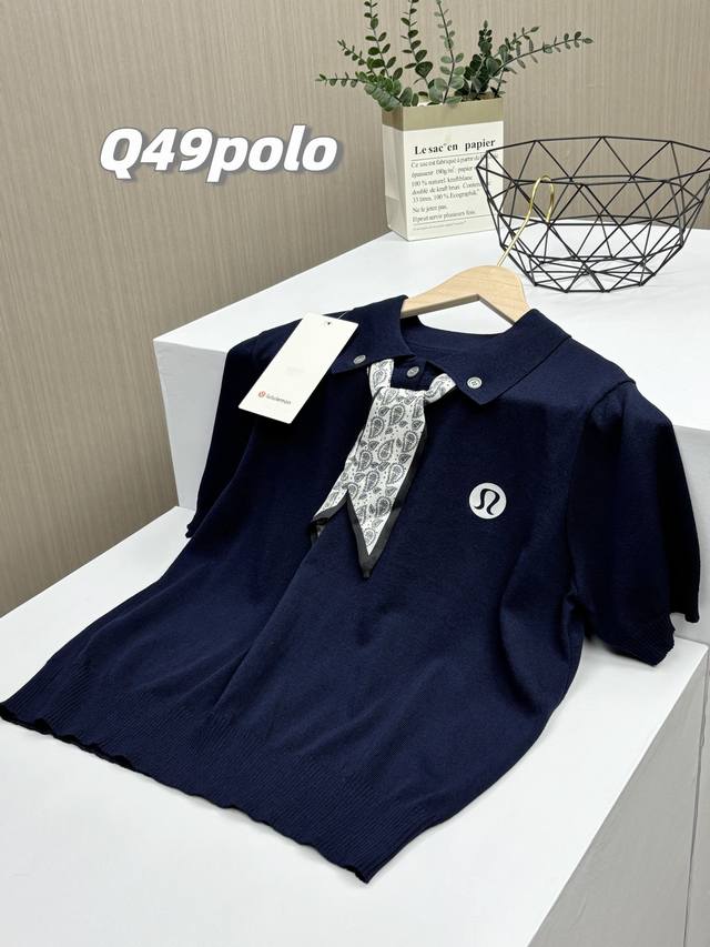 A must-have linen sweater for summer! Lululemon 2025 new summer business goddess Polo collar linen sweater T-shirt, scarf collar high elastic ice-feeling linen short-sleeved T-shirt, slim-fitting and meat-covering sports top! The highest end this summer, business + leisure + fashion + cool + comfortable, all in one place!