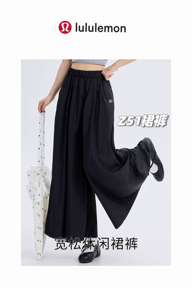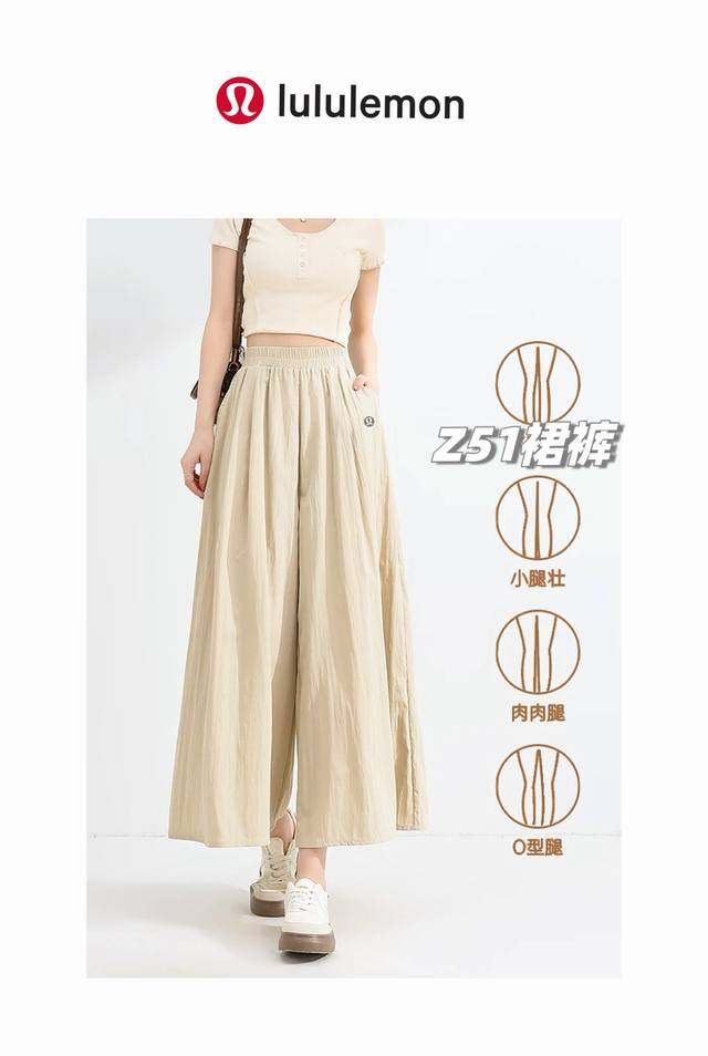 A pack of 2 pieces, looks like a skirt, but is actually a pair of pants. Ice oxygen cotton fabric is a must-have for summer. You only need this pair of pants to have long legs! Lululemon 2025 new summer women's high-waisted ice oxygen cotton skirt pants! Slimming textured skirt-style wide-leg pants, summer sun protection pants skirt, visually increase 8cm! High-waisted wide-leg pants can modify the leg lines very well, super drape, no need to take care of, super slim upper body, highlight the length of the legs, easy to wear without pressure!