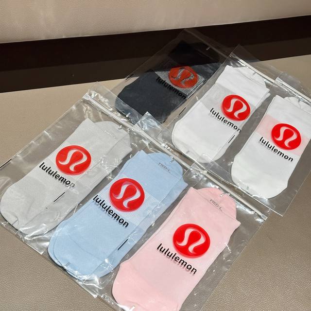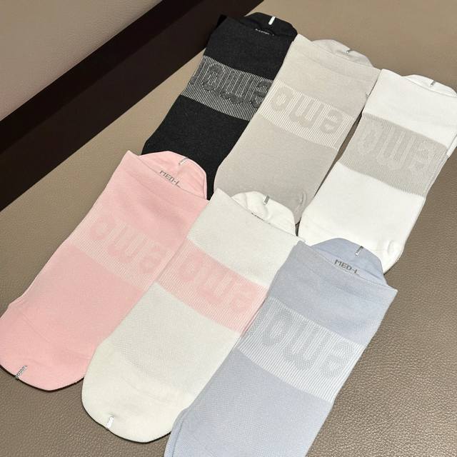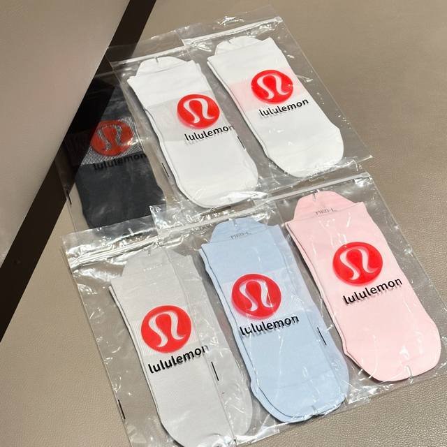A set of 6 pairs of Lulu unisex short socks, simple solid color, embellished wi