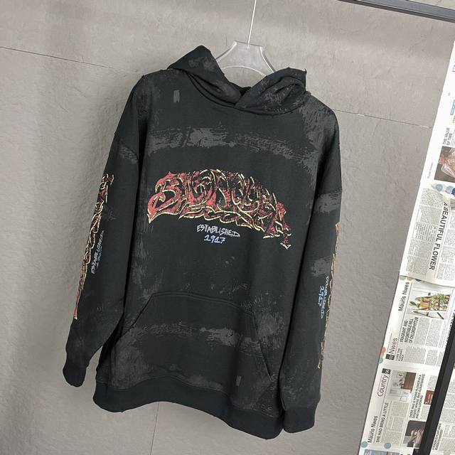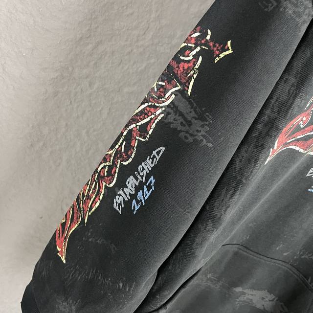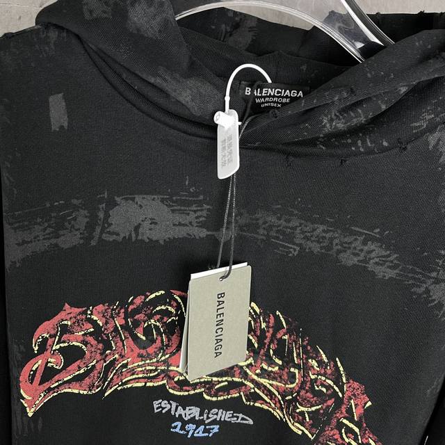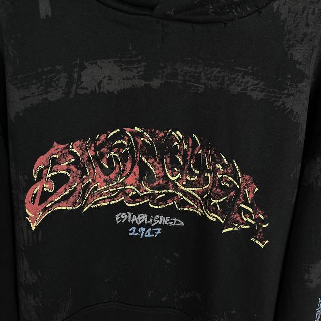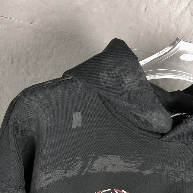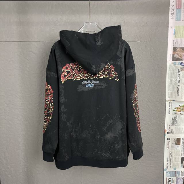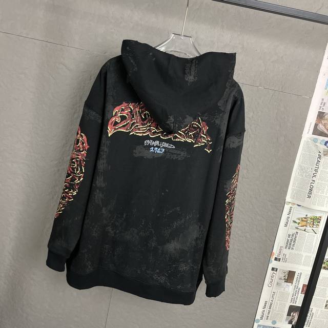 A85 Ddd High-quality Balenci*Ga Paris hooded zip-up sweatshirt. Purchased directly from the original pattern. The front and back sleeve prints use imported Conley direct-to-garment printing technology. The garment undergoes a second wash, and all details are meticulously hand-positioned, distressed, and frayed for an artistic, distressed effect closer to the original. The distressed and faded effect is achieved through meticulous hand-positioning, spreading, and applying ink and mud to ensure a more precise and time-consuming finish. Details are perfectly reproduced. Exclusively custom-woven and dyed 480g fabric with ribbed ribbing, dyed in the same batch with zero color difference compared to other common items on the market. Unisex style. Ddd - Color: Black Ddd - Size: Xs SML DDD