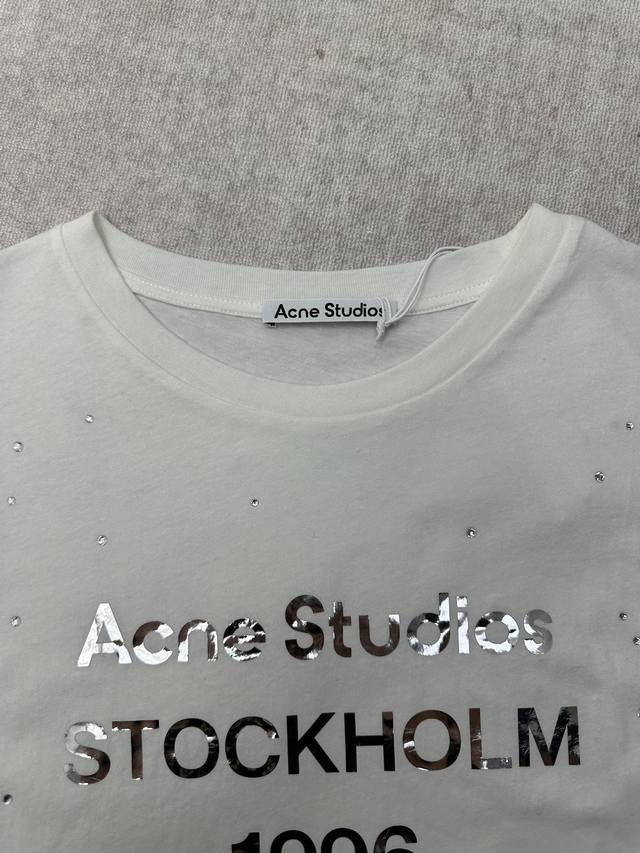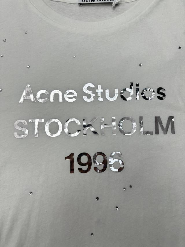 Ac 25Ss New Logo T-Shirt, Long-Sleeve Pullover T-Shirt with a metallic foil "Acne Studios 1996" logo printed on the chest, complemented by sequin details. Made from a lightweight cotton-linen blend fabric with an irregular surface, creating a retro feel. Loose fit, suitable for both men and women, hip-length. Sizes: S, M, L, DDD