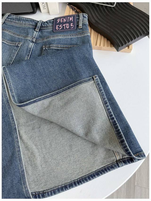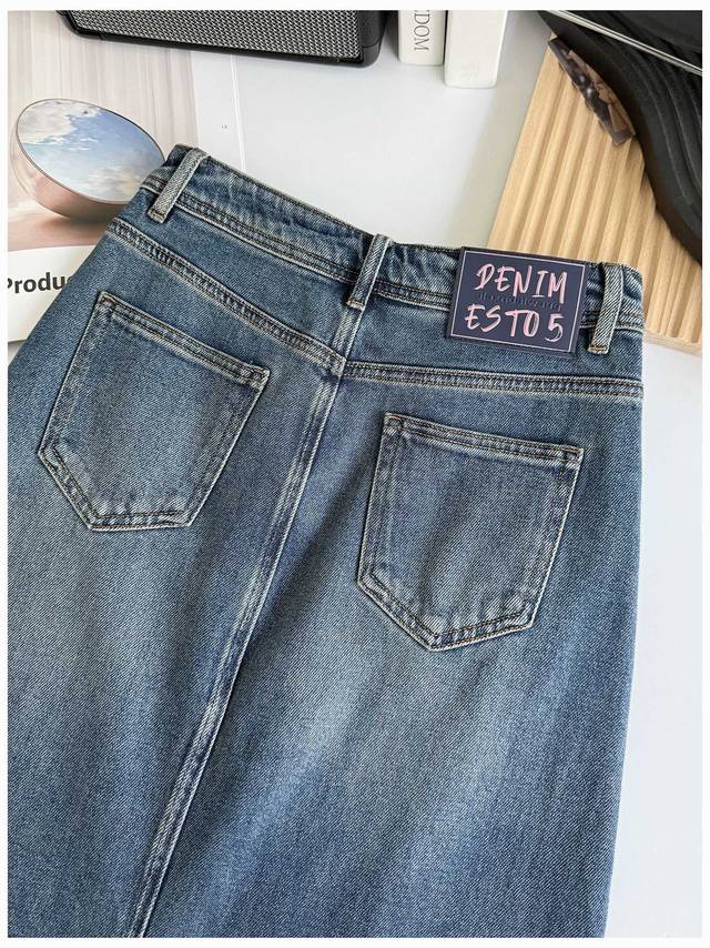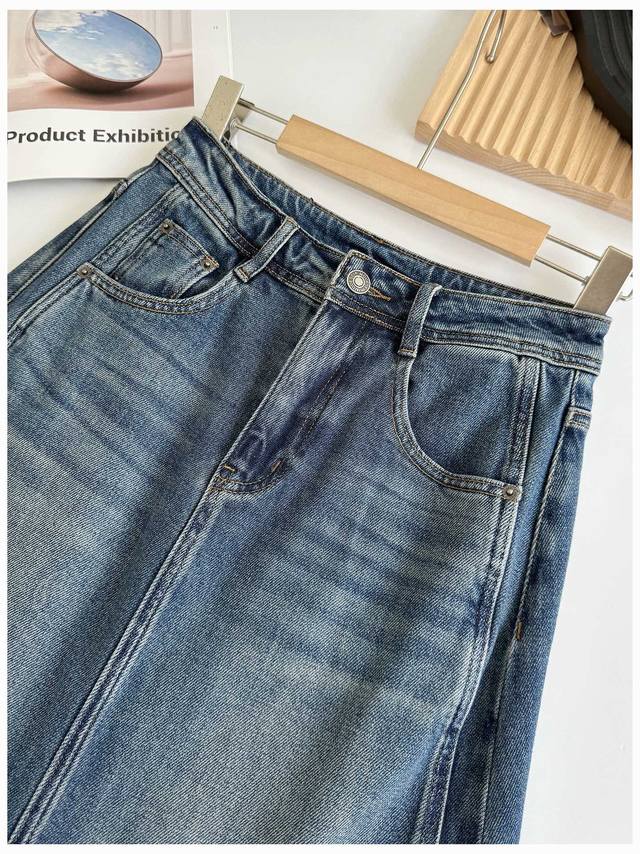 Acne denim skirt, Hong Kong style goddess! High waist, loose, slimming, high-end back slit denim skirt, women's autumn temperament mid-length skirt, retro style denim skirt is coming strong~