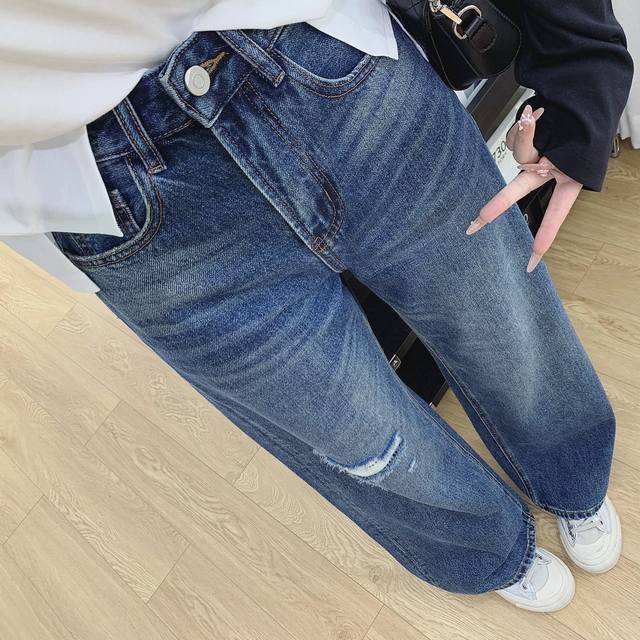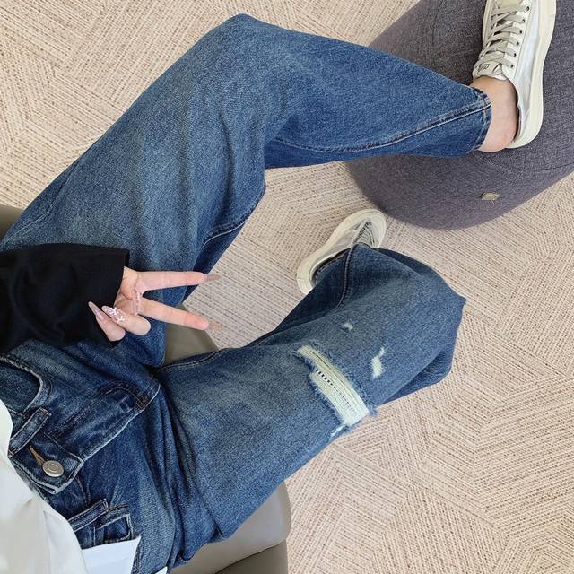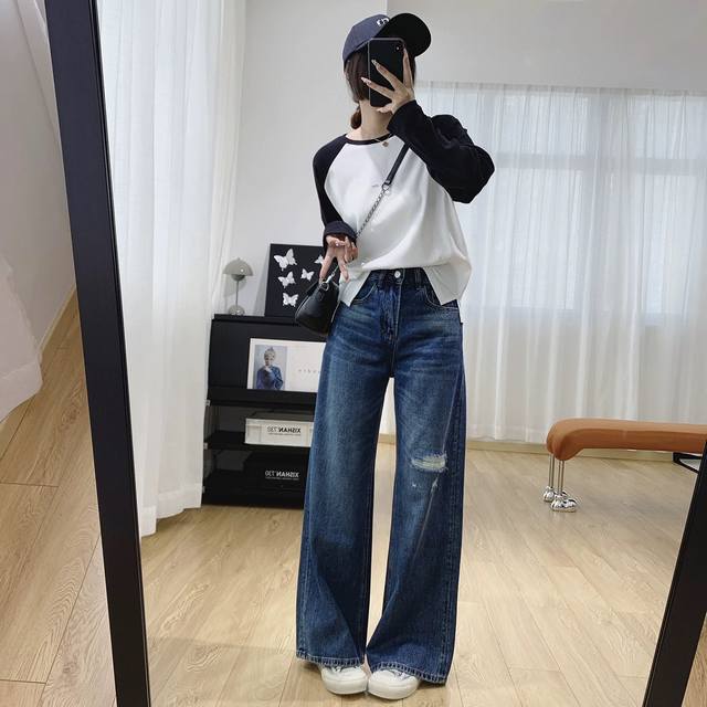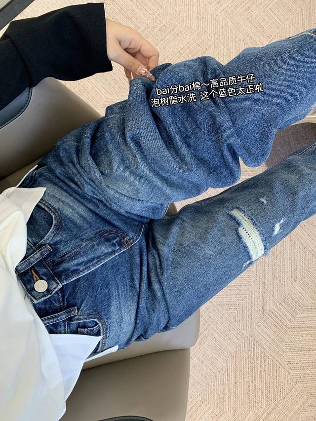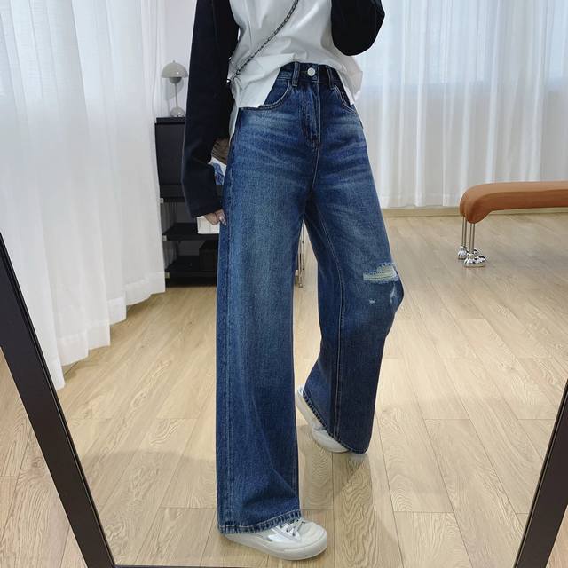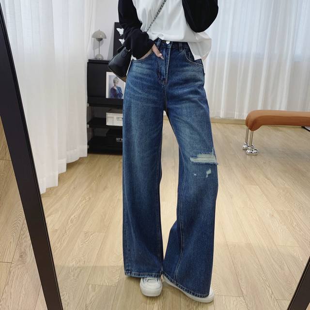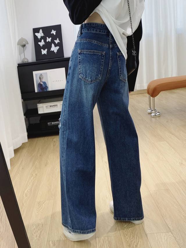 Acne Jeans 100% Cotton Non-Stretch Patches Fake Holes High-Waist Slimming Wide-L