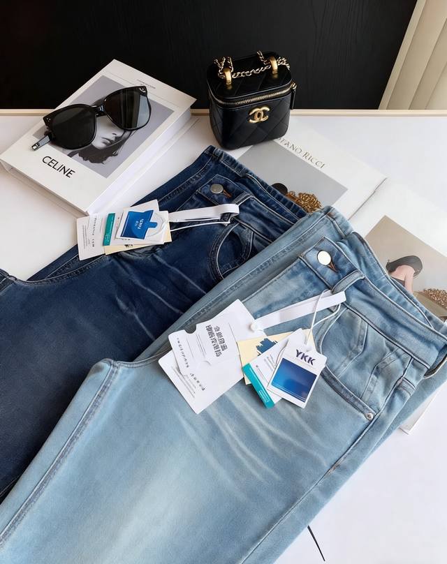 Acne jeans come with a built-in slimming effect! Embroidered high-waisted, high-quality casual slimming straight-leg wide-leg stretch skinny jeans for women. A treasure of jeans for autumn and winter! Tall and short women alike will adore these skinny straight-leg floor-length jeans. The formula for a slimming effect on your legs: skinny straight leg + super slimming length. The jeans have a built-in "visual slimming effect." The skinny straight leg tapers smoothly from the waistband to the hem, neither too tight nor too loose. Even those with uneven or slightly chubby legs will instantly become "chopstick legs." Made with breathable, custom-made high-elastic fabric: Wearing them all day feels like you're not wearing pants at all. The fabric is so durable you'll scream! You won't feel constricted even when squatting or doing the splits. Knees won't bulge after prolonged sitting. They won't deform after washing, feeling as soft and fluffy as if wrapped in a cloud. Details to delight: embroidered fabric wash label + cotton pockets + YKK zippers, buttons, and rivets. High-end multi-process washing combined with resin foaming technology makes the denim color clearer and cleaner, and... These jeans, designed to easily deform and wrinkle, feature hand-stitched lightning bolt whiskers on top of the standard washing process, giving them a more upscale and sophisticated denim feel. They pair perfectly with any top, even a simple white T-shirt, creating a polished look that's effortlessly chic. In short, these jeans are a safe bet for any fashionista. Colors: Dark Blue, Light Blue. Size Chart: Waist, Hips