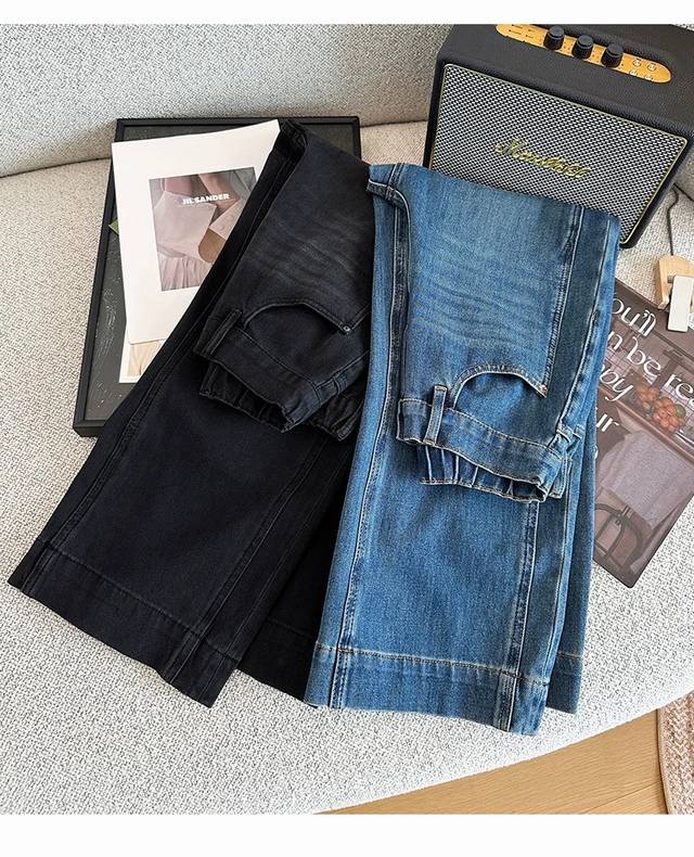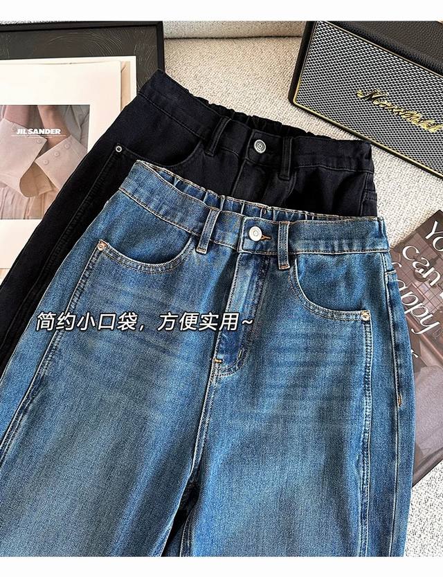 Acne jeans with elastic waist and four-way stretch in the back, high-waisted slimming jeans for women in autumn, loose straight-leg nine-point granny pants. I would like to call granny pants the ceiling of lazy wear. The 360