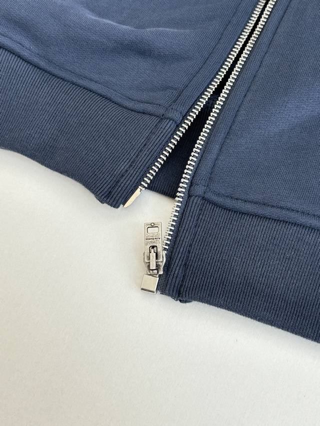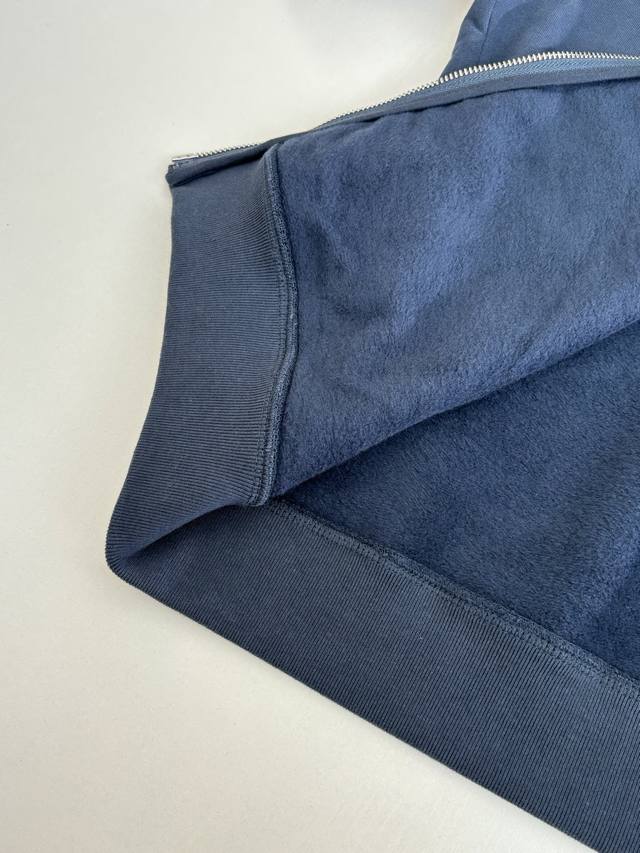 ) Unlike ordinary ready-made fabrics, we intervened from the yarn stage, developing a weaving solution specifically for this jacket. The fabric uses high-count combed cotton yarn, and by adjusting the loom parameters, we created a unique fleece fabric with a higher density, a richer and more even fleece feel, and a tighter structure. Its weight is precisely 380g, a calculated perfect balance that ensures the jacket's crisp silhouette and drape while avoiding the bulkiness and stuffiness of excessive weight, making it ideal for the transition from spring to summer. Based on Acne's signature low-saturation hues, multiple color calibration and washing tests were conducted to ensure accurate color. Imported environmentally friendly reactive dyes were used, treated with a special washing process, resulting in high colorfastness and a subtle distressed vintage tone, rather than a harsh new look. (