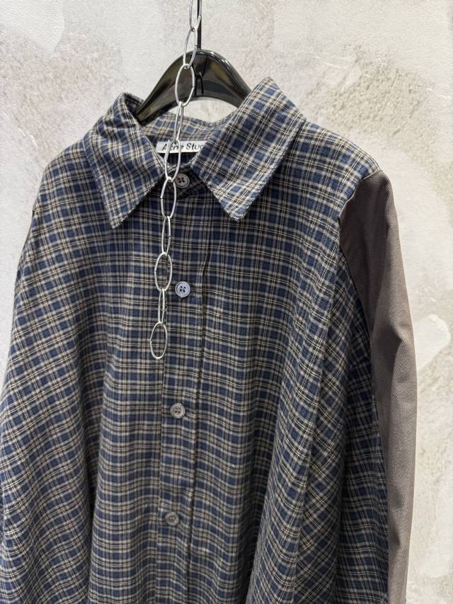 Acne Studio* Checkered Patchwork Shirt DDD This year, Acne's color-blocked checkered shirts are incredibly popular, adding a trendy and gender-neutral touch to the Nordic cool and elegant style Ddd Custom-made all-cotton checkered flannel fabric with color-blocked patches on the sleeves