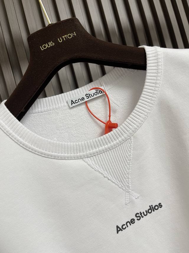 Acne Studios 2025Ss Autumn New Logo Sweatshirt, Custom-made 100% Cotton Soft Active Ink Sweatshirt Fabric, Soft, Comfortable and Skin-friendly. A pure white sweatshirt symbolizes purity and elegance. The iconic Acne Studios logo is subtly drawn on the chest, adding brand recognition. Its minimalist design creates a sophisticated silhouette, becoming a visual focal point, showcasing taste in silence. Using plastisol printing, the pattern is printed on the fabric using liquid plastisol ink and baked to fix the print. The fabric is treated with a water-based coating for a better feel and texture, making it less prone to deformation, shrinkage, and fading, maintaining its long-lasting beauty. Sizes: S-XL DDD