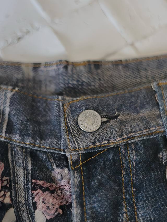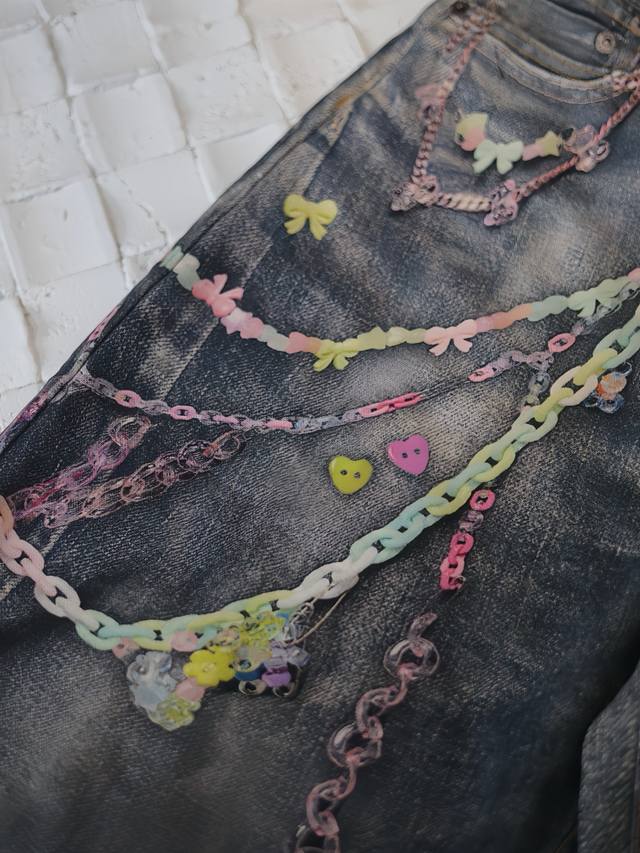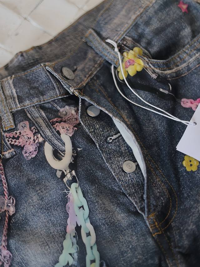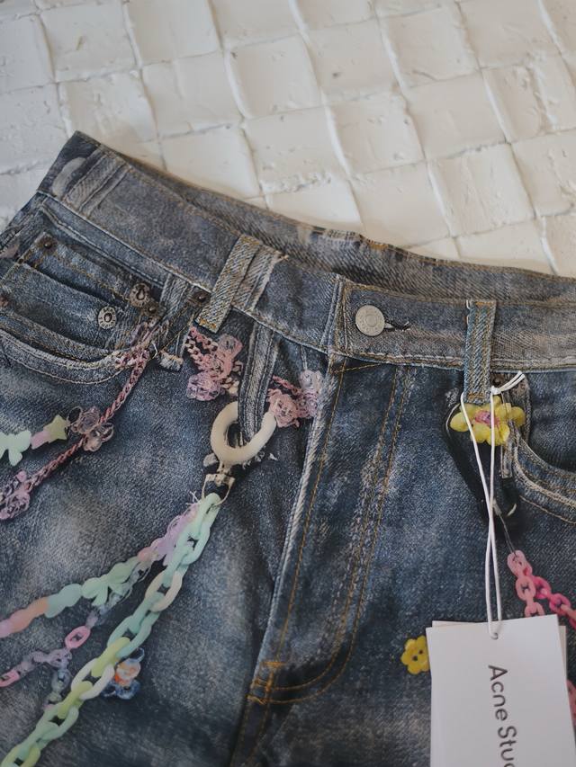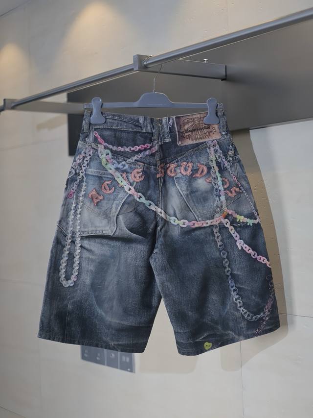 Acne Studios* 25Ss New Candy Chain 3D Printed Denim Shorts The yarn composition