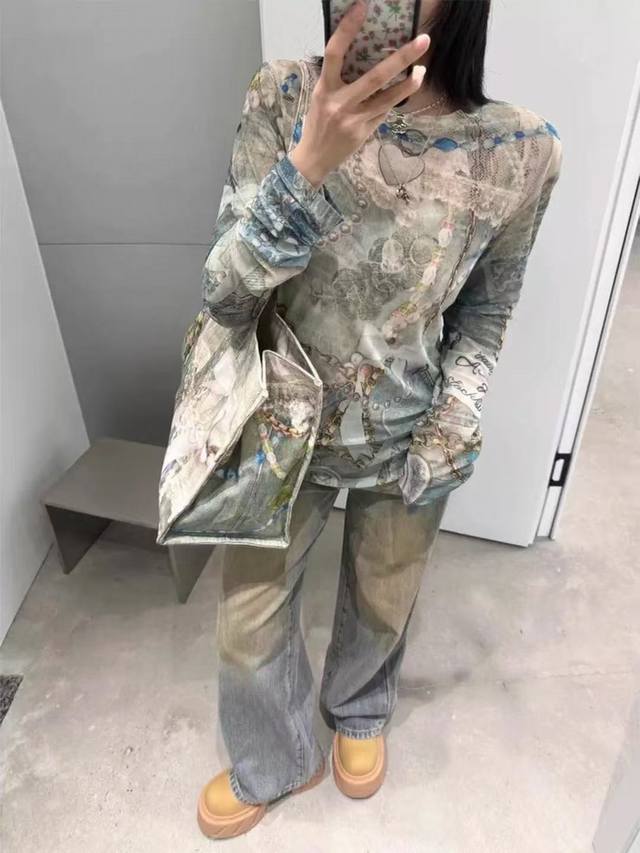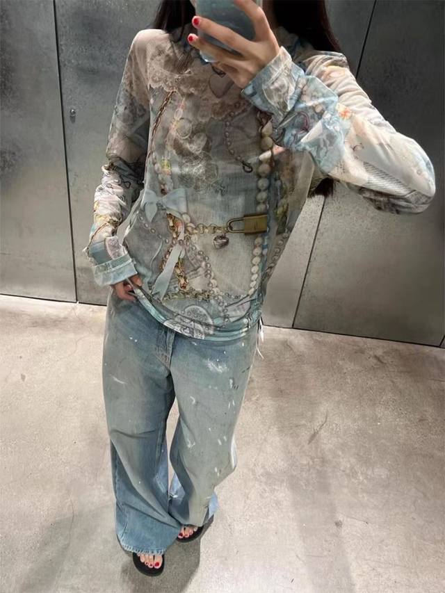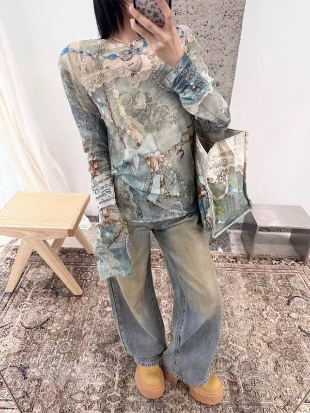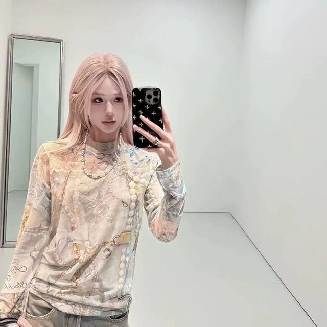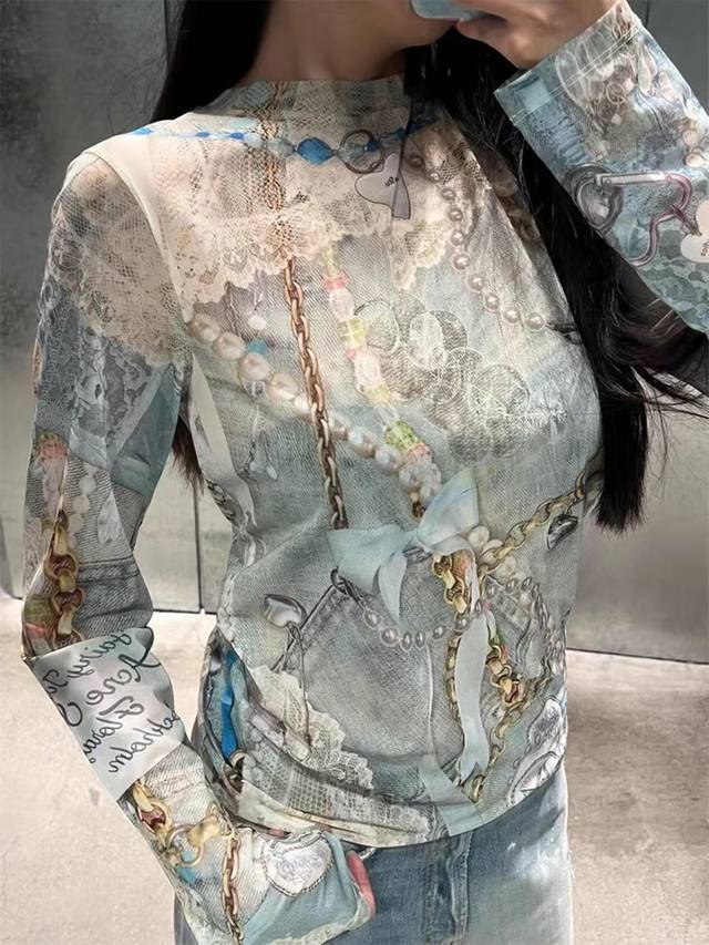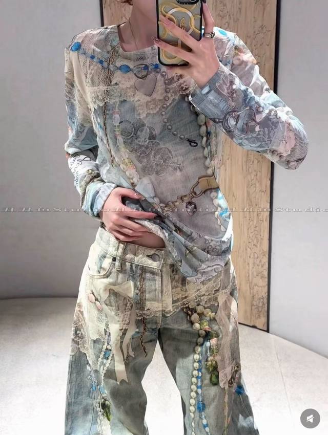 Acne Studios Early Spring 3D Lace Pearl Strip Print Long-Sleeve T-Shirt Women's High-End Sexy Style Top Thin Slimming Base Layer Style No.: Ac920 Price: Sizes: SML Color: As pictured