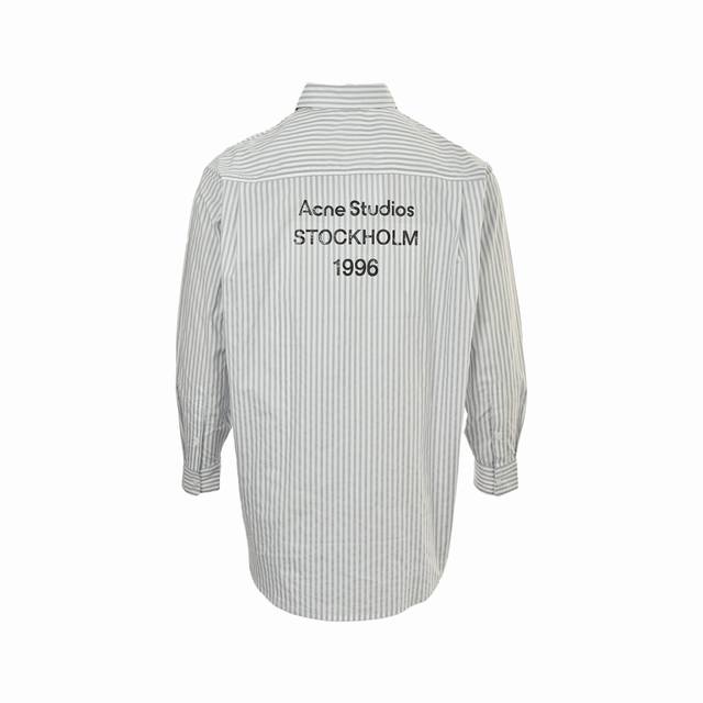 Acne Studios long-sleeved shirt with vertical stripes and letter print on the back