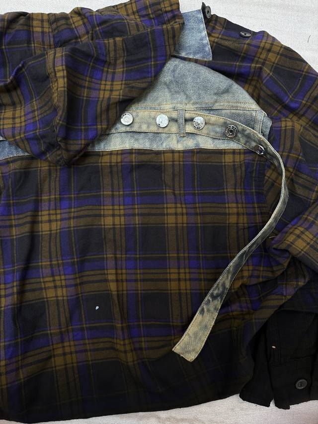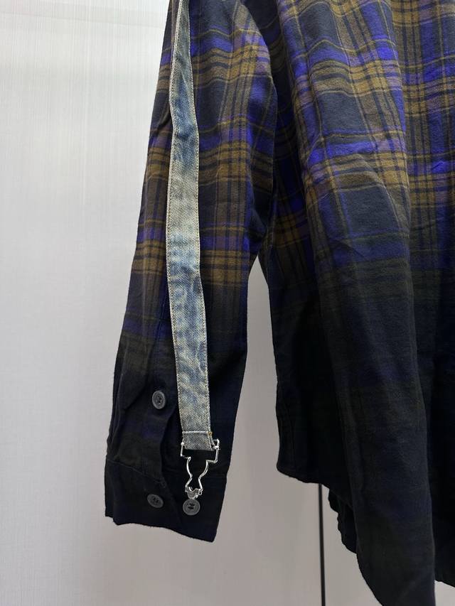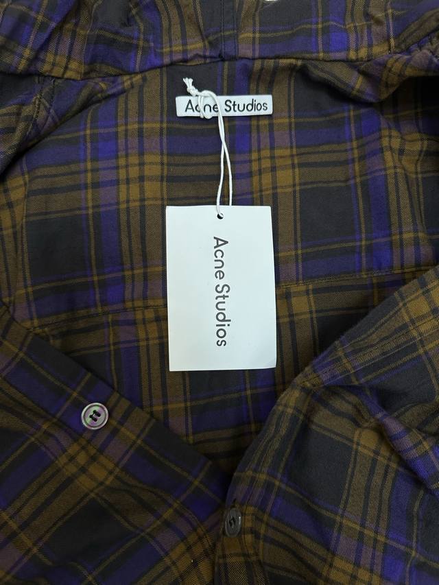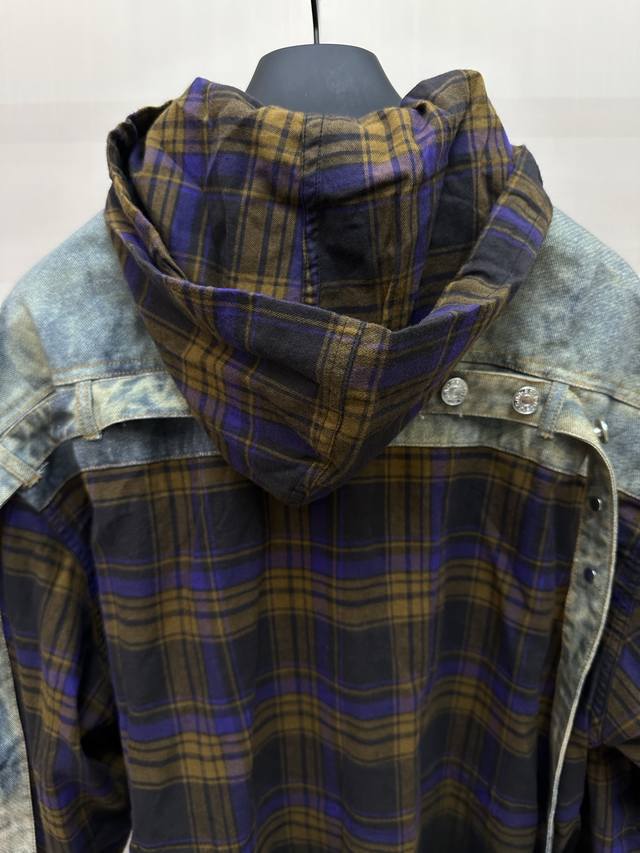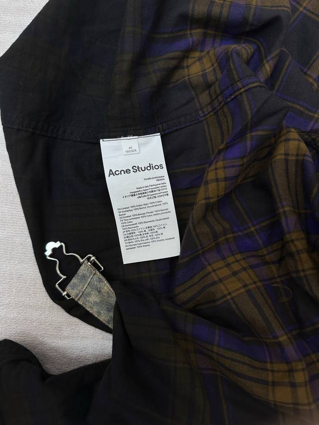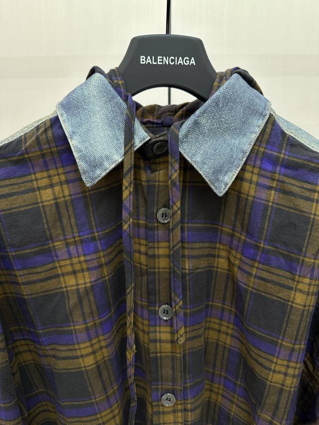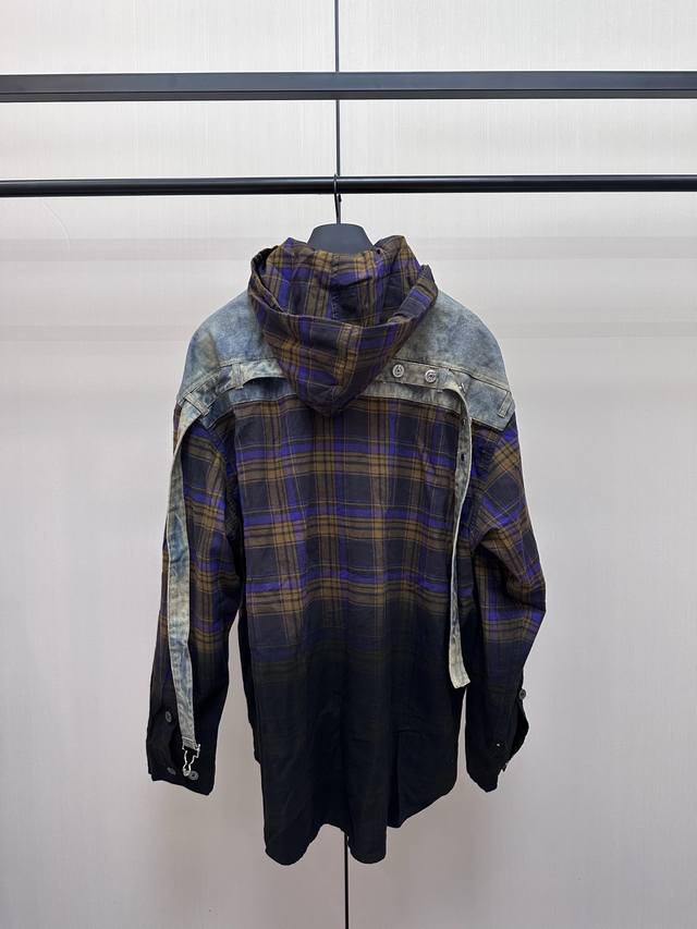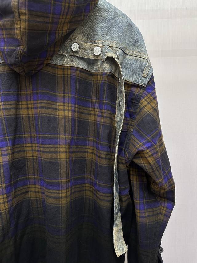 Acne Studios patchwork denim hooded long-sleeved shirt is made of cotton patchwo