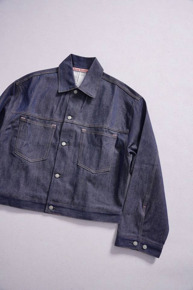 ) A raw denim jacket made with original Italian Berto fabric. The boxy silhouette flatters the figure, making it an essential quality piece for spring and autumn!