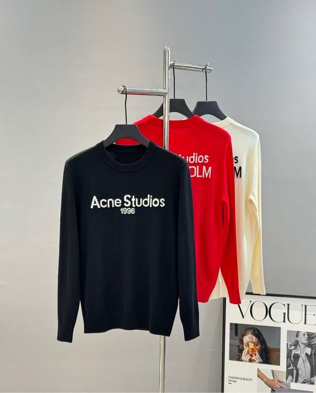 Acne*Studios Original Wool Sweater. 24S New Arrival! Unisex! Basic letter jacquard sweater on the chest and back. Latest fashionable color scheme for autumn/winter. Lettering is a hot trend right now. Stunning effect when worn! Custom-woven wool blend fabric. Soft and delicate against the skin. Comfortable and smooth. The sweater features a stylish and eye-catching jacquard pattern. The craftsmanship is undoubtedly superb. Colors: Black, White, Bright Red. Sizes: M-3XL Slim fit! Recommended size for 175 lbs: L, D, D