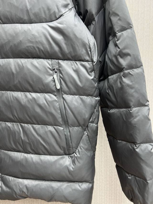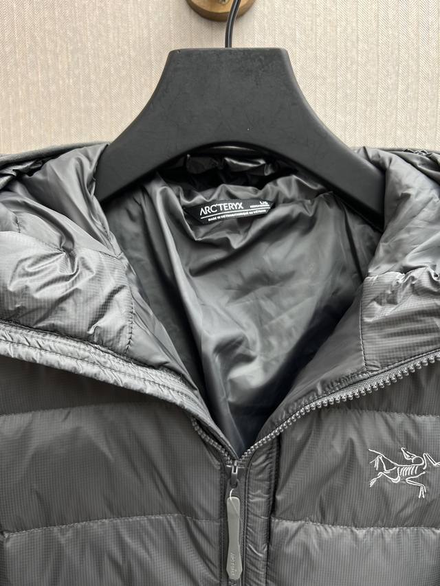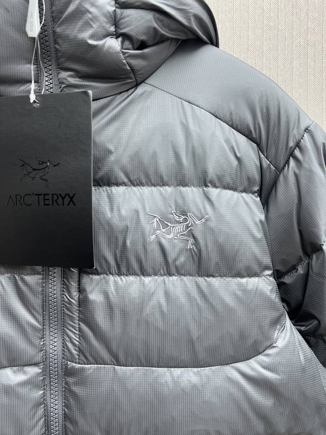 A*C'Teryx 24Ss New Down Jacket, Warm and Durable Hooded Down Jacket with Embroidered Brand Logo on the Chest, High-Quality Version. Sizes: M, L, XL, XL.