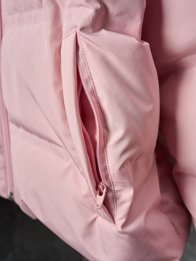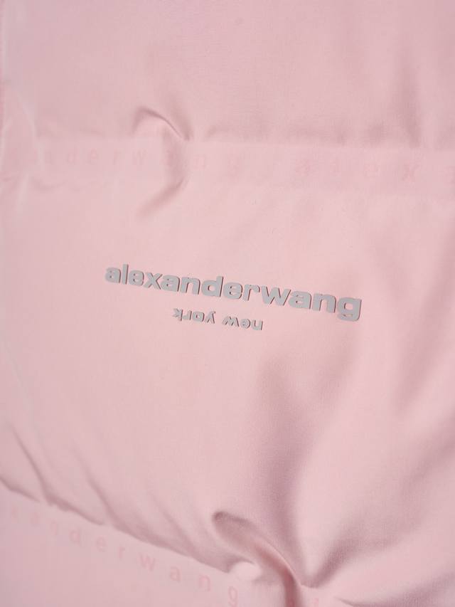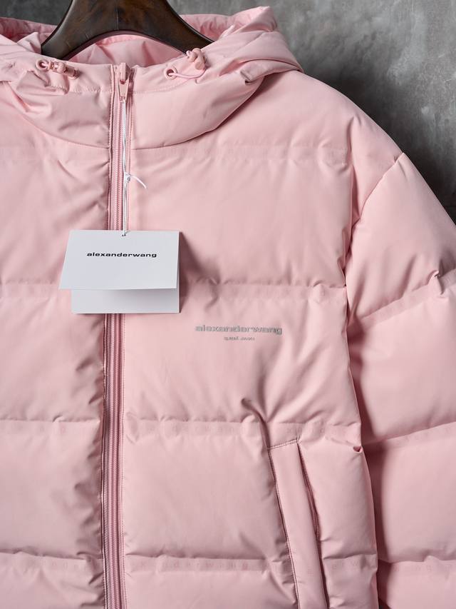 Actual item listing Alexanderwang Women's Short Plaid Hooded Down Jacket DDD Ddd Colors: Black, Blue, White, Pink Ddd In Stock: S, M, L DDD Ddd This Oxford blue short down-filled jacket features a logo print on the chest, a front zip and pocket design, and an elasticated hem. It has a funnel neck with a zip closure and lined interior zip pockets DDD