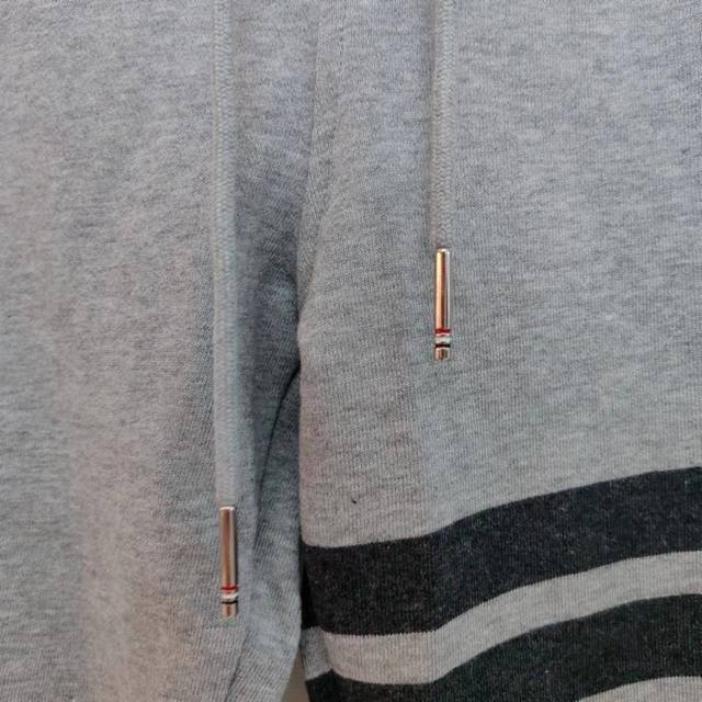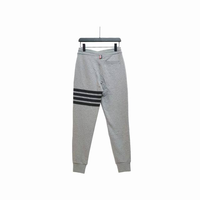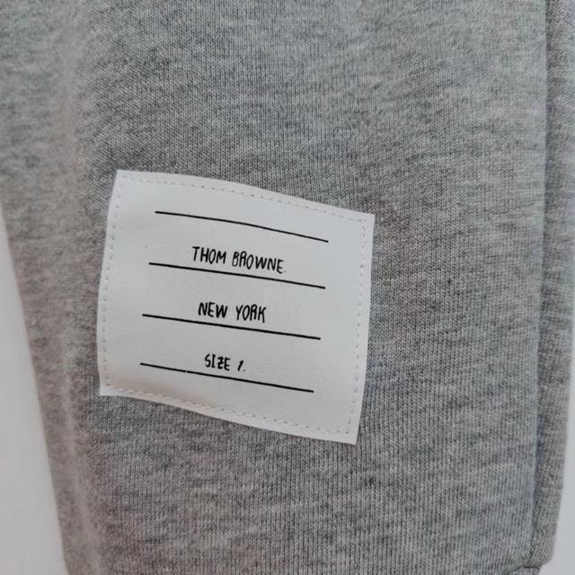 Tb trousers with classic yarn-dyed gray and blue stripes, four-bar sweatpants. Zp fabric is custom-dyed with 380g of classic terry cotton. High-definition reproduction of details and fine workmanship are achieved using imported sewing equipment. The threaded waistband is custom-made with elastic and woven with hardware, and the trouser drawstring can be rotated.