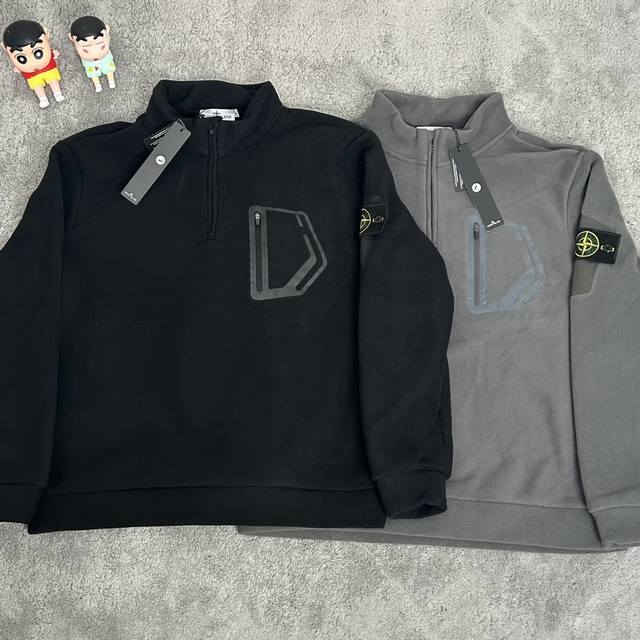 Stone Island Autumn Plush and Thickened Half Zipper Turtleneck Sweatshirt Actual photos Exclusive style