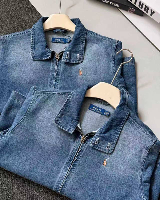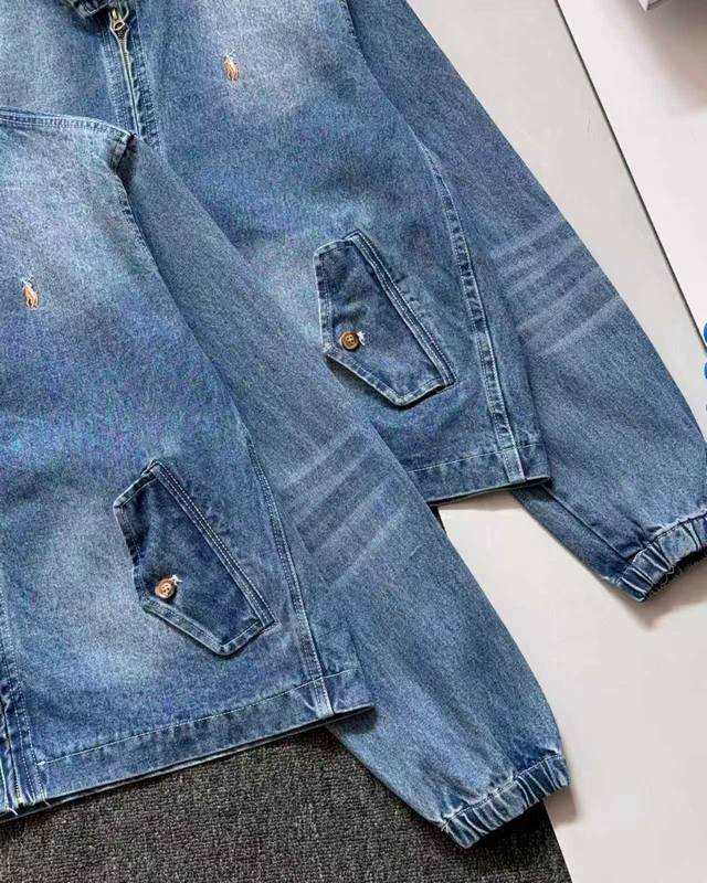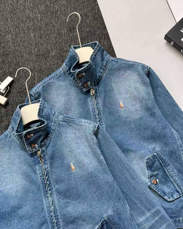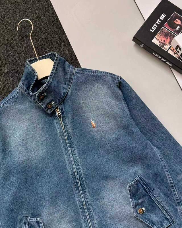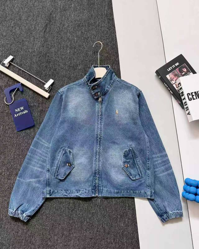 Ralph Lauren 2025 loose stand collar zipper long sleeve denim jacket autumn new washed jacket