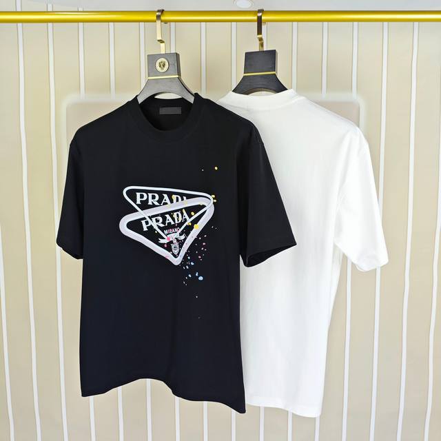 Ada Prada 2025 Spring/Summer New Original Men's Crew Neck Short Sleeve T-Shirt, Sold in Department Stores, High-End Quality, High-Version Os Fit, Wide Fit, Popular Style, Printed Logo on Chest, Custom Design, Imported Double-Strand 100% Pure Cotton Fabric, Soft and Delicate to the Touch, Skin-Friendly and Comfortable to Wear, Factory Direct, Exquisite Workmanship, Very Handsome and Stylish, A Must-Have Item for Men, All Tags Complete, Sizes: S-3XL, Largest Size Fits Approximately 220 lbs, Please Provide Height and Weight When Ordering, Black, White,