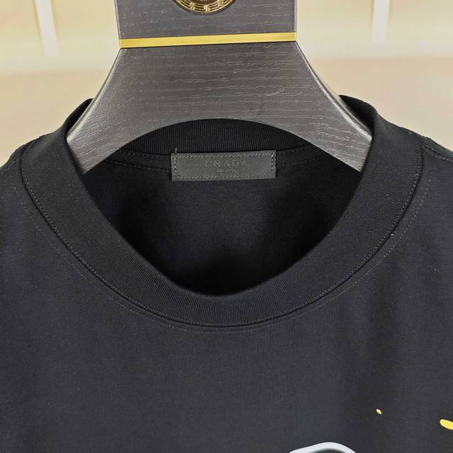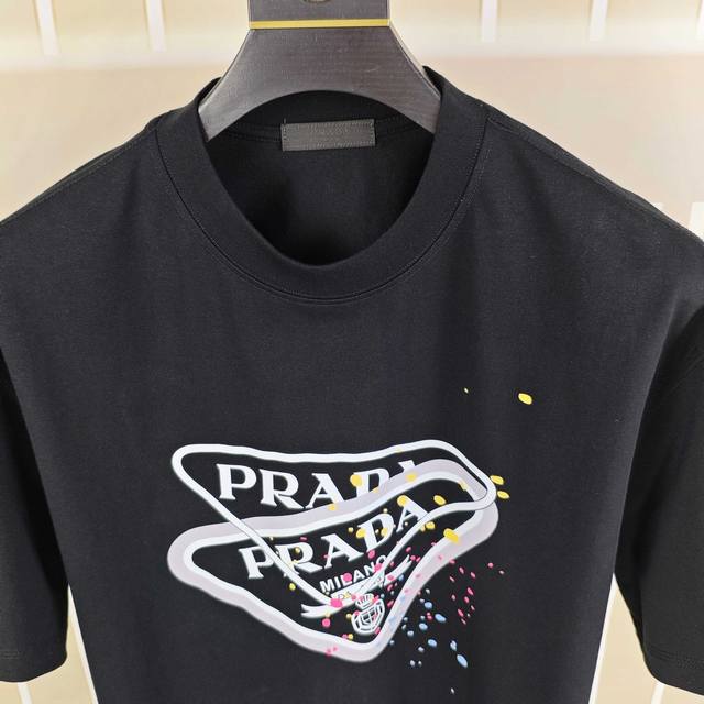 Ada Prada 2025 Spring/Summer New Original Men's Crew Neck Short Sleeve T-Shirt, Sold in Department Stores, High-End Quality, High-Version Os Fit, Wide Fit, Popular Style, Printed Logo on Chest, Custom Design, Imported Double-Strand 100% Pure Cotton Fabric, Soft and Delicate to the Touch, Skin-Friendly and Comfortable to Wear, Factory Direct, Exquisite Workmanship, Very Handsome and Stylish, A Must-Have Item for Men, All Tags Complete, Sizes: S-3XL, Largest Size Fits Approximately 220 lbs, Please Provide Height and Weight When Ordering, Black, White,