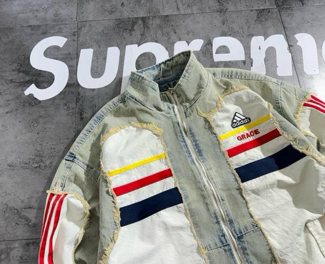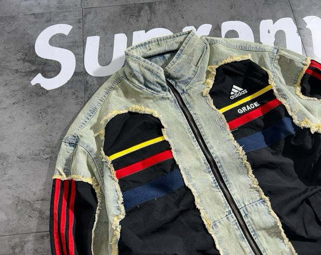 Adidas splicing 2025 autumn new embroidered retro denim jacket