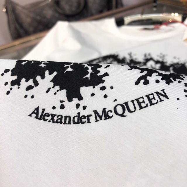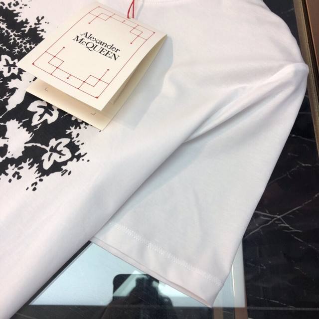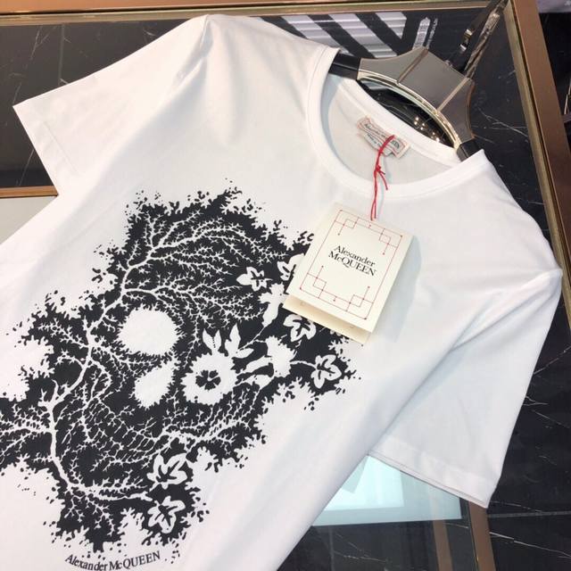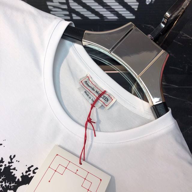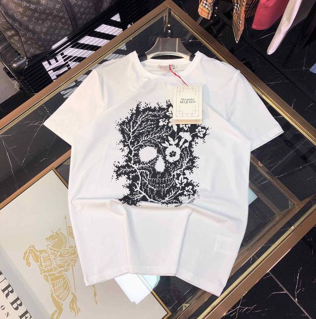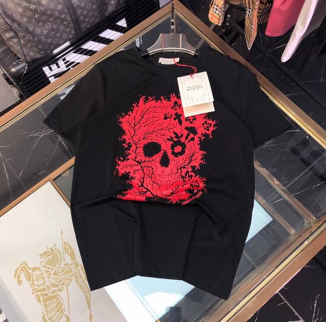 Alexander McQueen, Spring/Summer 2023 New Arrival, available in boutiques, original factory overrun, 1:1 high-quality custom-made imported mercerized cotton crew neck T-shirt, top-grade digital skull print, extremely comfortable, perfect fit, stylish and handsome when worn. Sizes: S-3XL