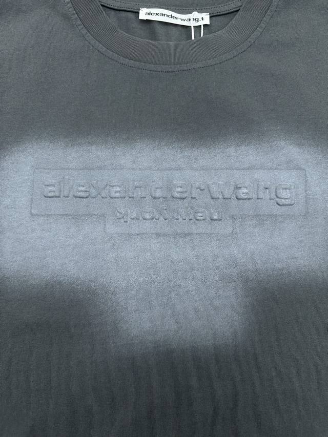 Alexander Wang 25Ss Men's New Reflective Halo Print Logo T-Shirt. This washed black cotton jersey knit T-shirt features a fitted short-sleeve design. It has a ribbed crew neck and a reflective halo print encircling embossed logo on the chest. It can be worn alone or layered for added style. Sizes: S, M, L, DDD