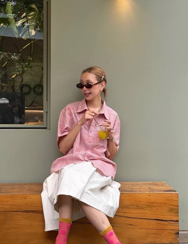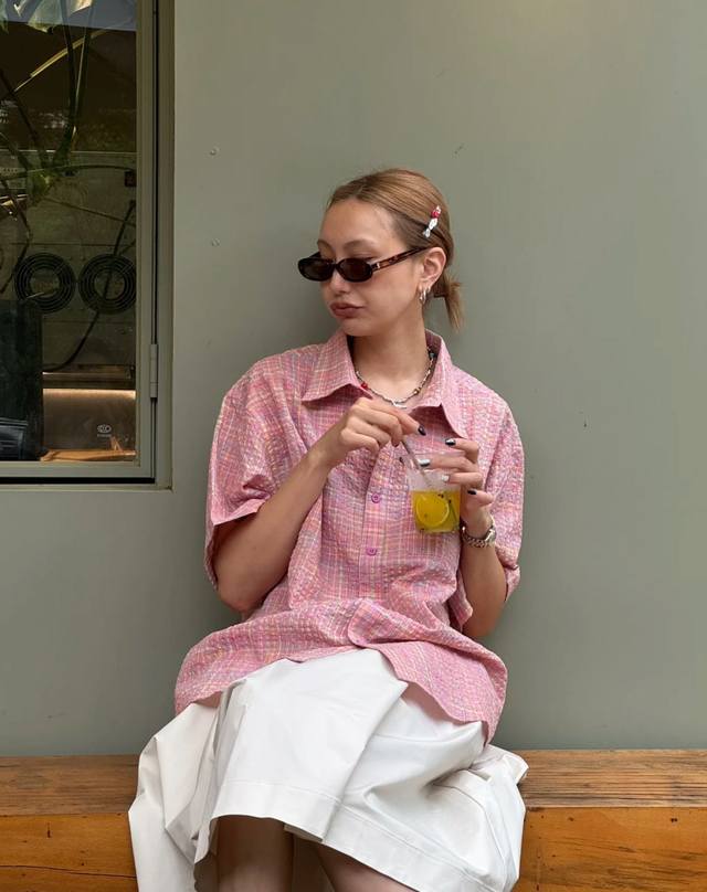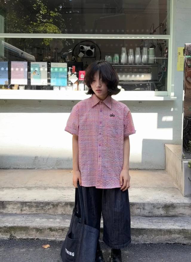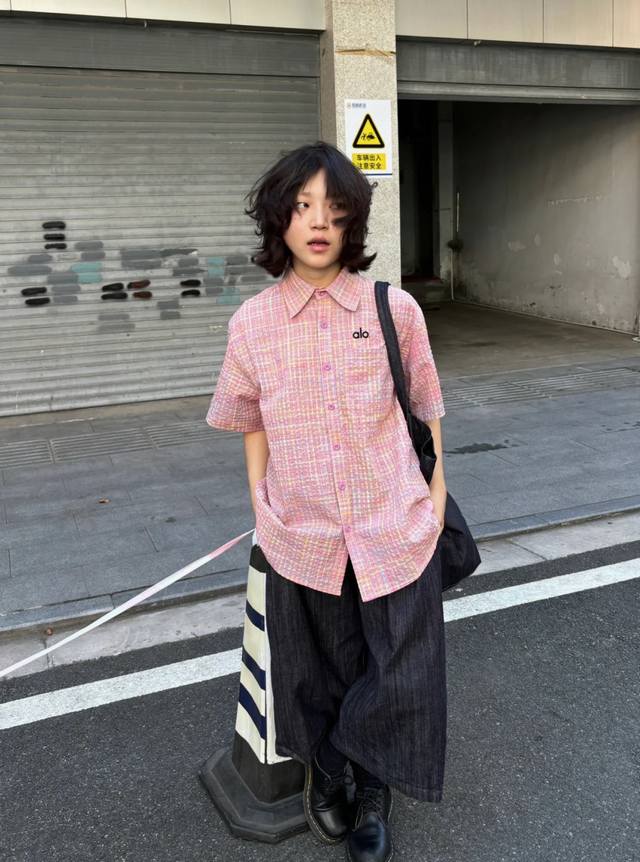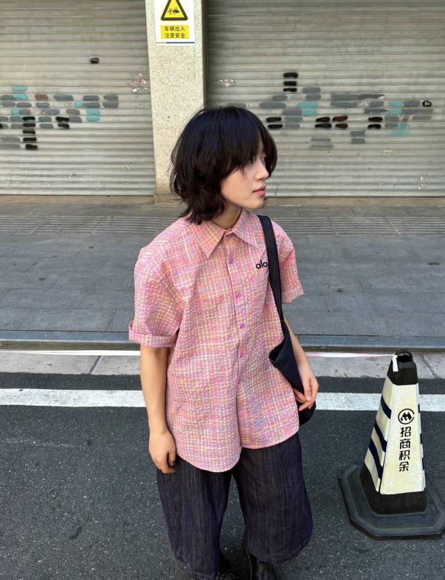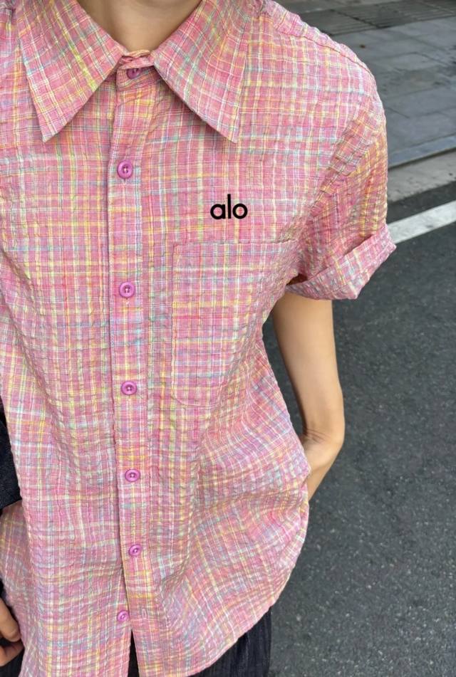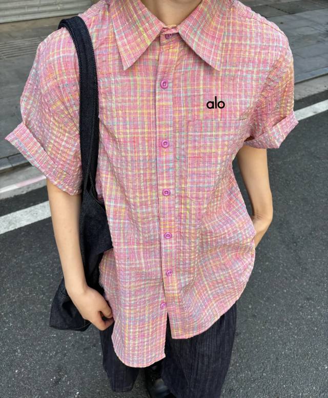Alo color-woven plaid seersucker loose-fitting short-sleeved shirt for men and w