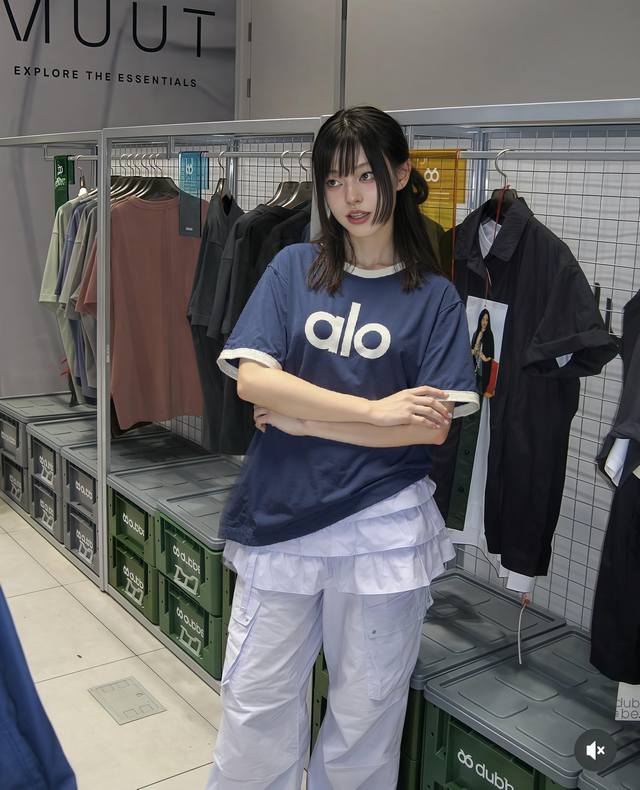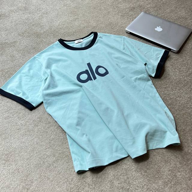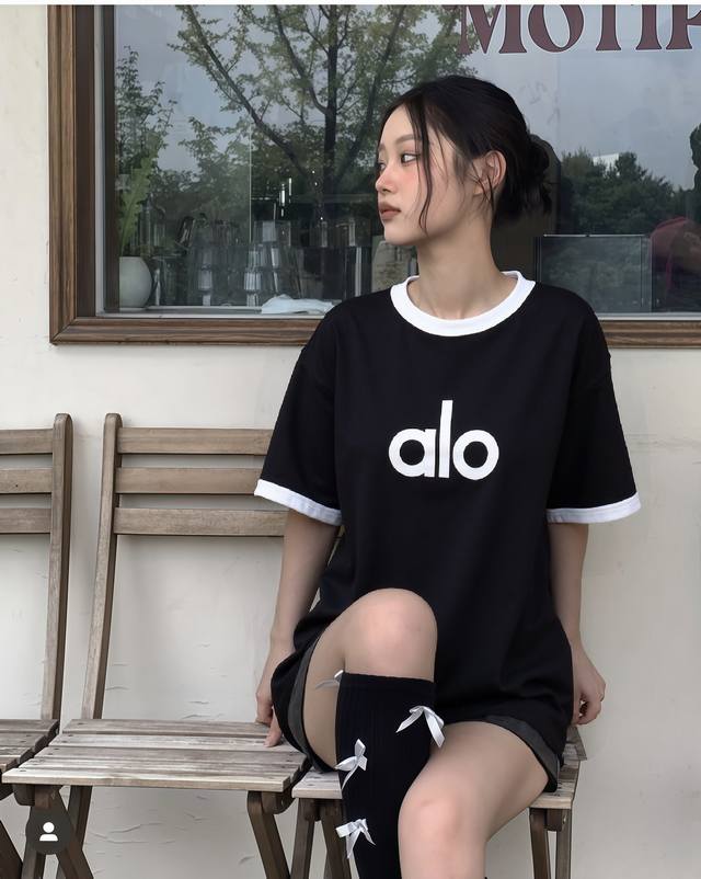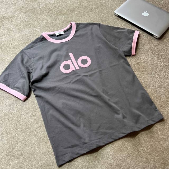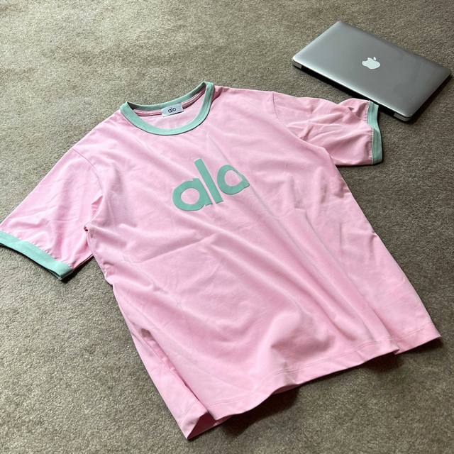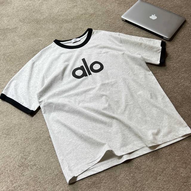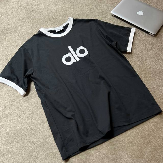 Alo contrast color stitching Ins style foam printing logo loose lazy style T-shirt