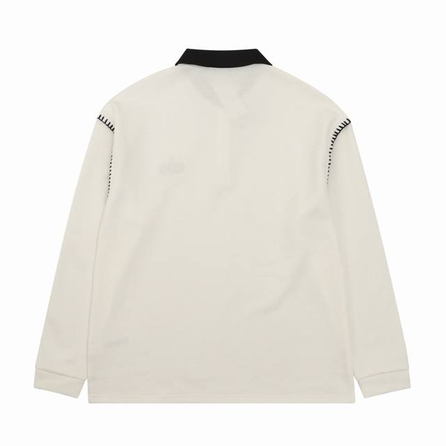 Alo Letter Embroidery Lapel Long Sleeve Polo Shirt Size: SL