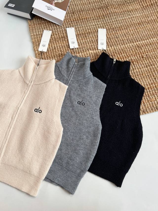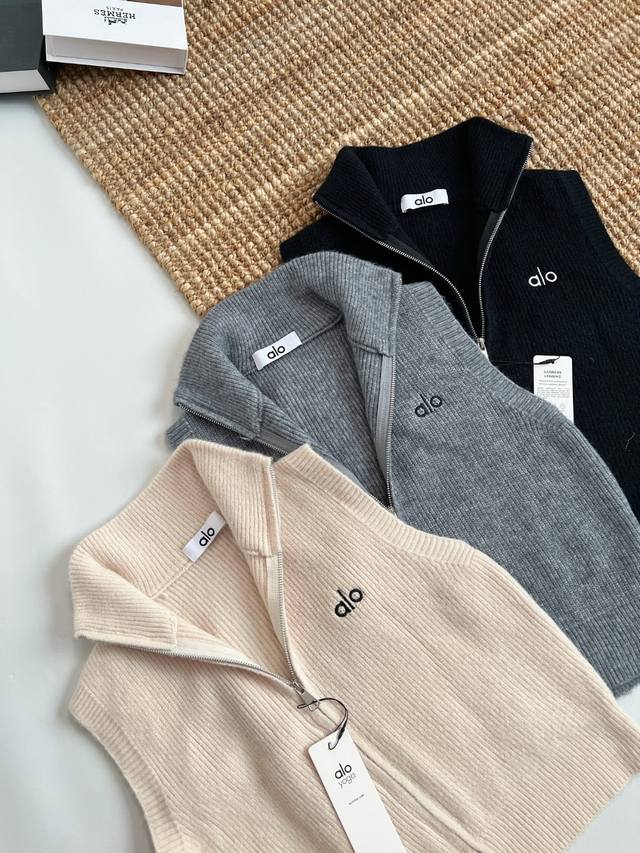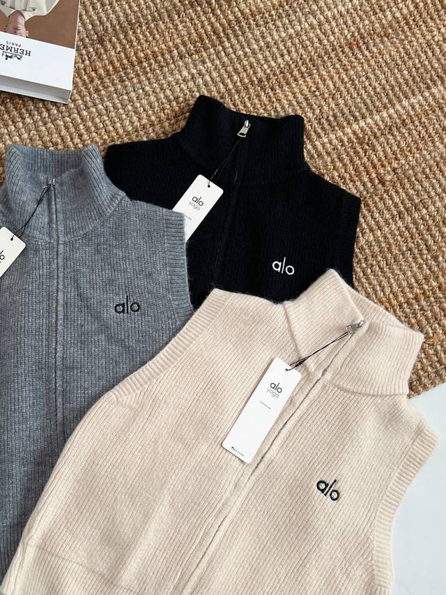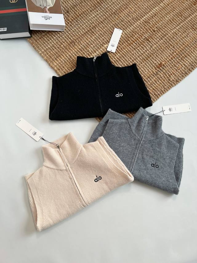 Alo Women's New Knitted Vest with Zipper Stand Collar Cardigan