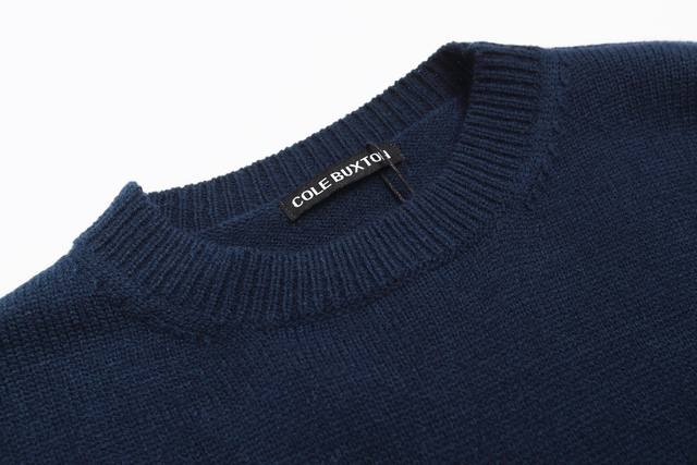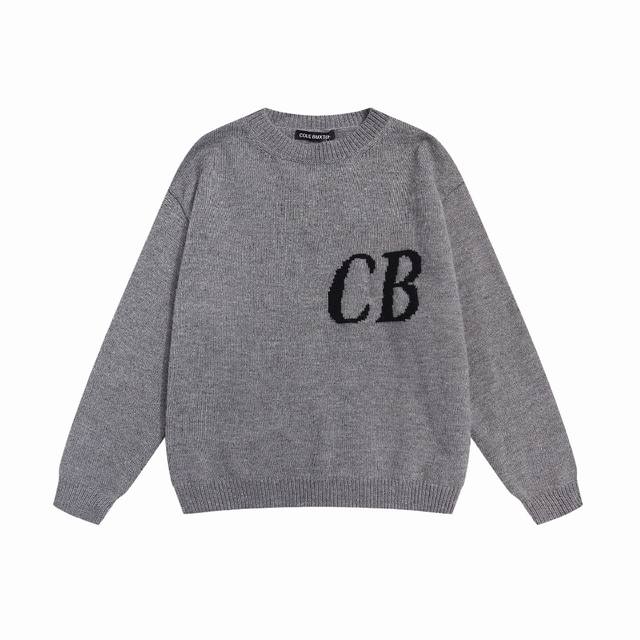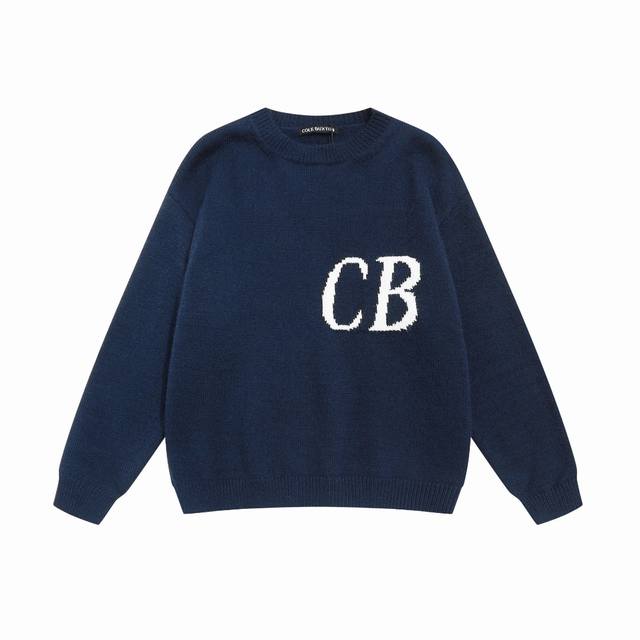 American streetwear Cole Buxton minimalist letter jacquard knit sweater, niche high-street unisex loose casual crew neck sweater. Style number: Cb635. Sizes: S, M, L, XL. Colors: Black, Off-white, Gray, Blue, Dark green. Price: [Price not specified]