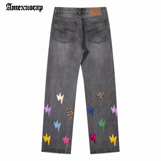 Amexnocap Lightning 25Fw Colorful Leather High Street Washed Jeans Iron Gray