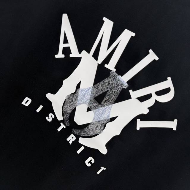 Ami 2025 Spring and Autumn new 320g custom fabric round neck short sleeves personalized overlapping lettering mold unisex loose version SML Xl Xxl five sizes color black white
