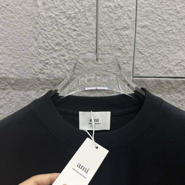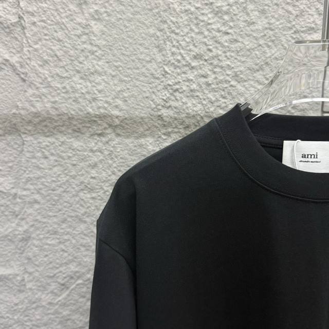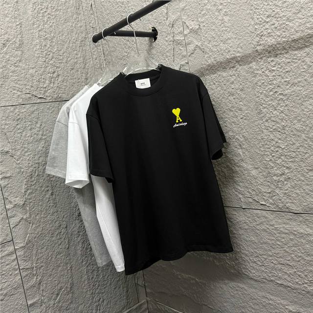Ami* 2025 Spring and Summer new embroidered yellow love letters customized double yarn plain cotton fabric short-sleeved T-shirt for men and women