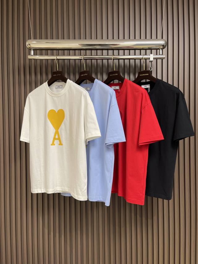 Ami 2025Ss Spring/Summer New Logo Print Crew Neck Short Sleeve T-Shirt. Ami's casual yet stylish design is subtly combined. This T-shirt features a relaxed fit, with the Ami logo print overlapping different colors on the fabric, creating a highly recognizable and aesthetically pleasing look without being overly flashy. This T-shirt is destined to be a top-selling item this year. Sizes: M-XL