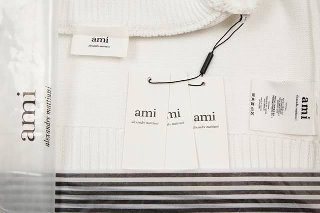 Ami 21Fw embroidered heart micro-logo crewneck sweater. New fall/winter V-neck knit solid color heart jacquard crewneck sweater for both men and women. Fabric: Original custom blend of 15% merino wool and 85% combed cotton, not the typical core-spun yarn used on the market. Soft, comfortable, smooth, and pilling-resistant. Jacquard: Heart-shaped Stoll intarsia pattern on the chest. Exquisite, smooth lines. Accessories: Original custom main label, care label, and hangtag. Sizes: S-XL.