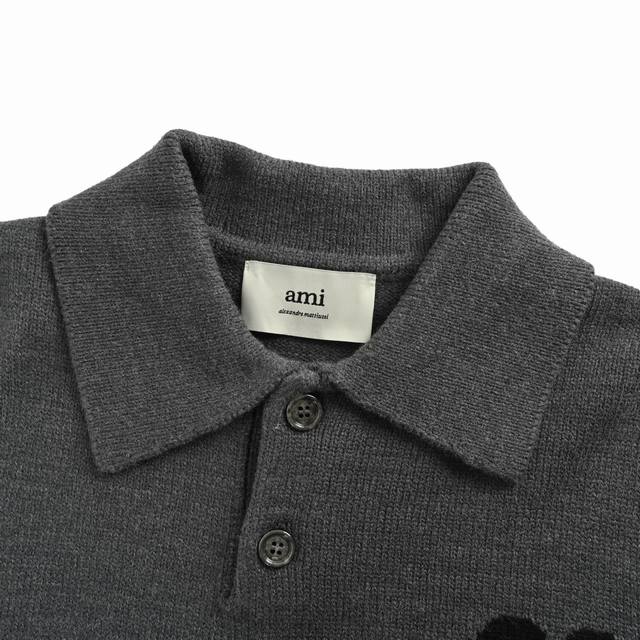 Ami 25Fw Heart Jacquard Collar Polo Sweater (