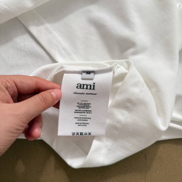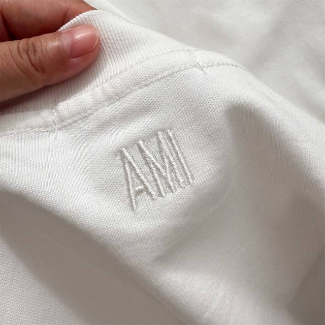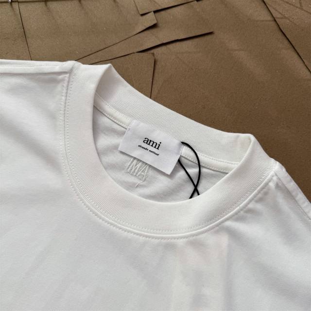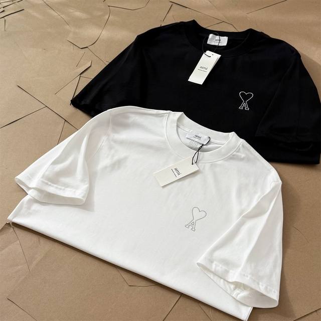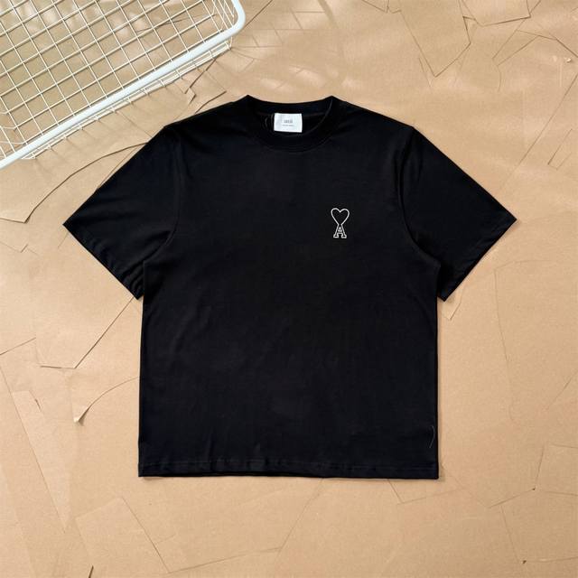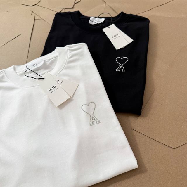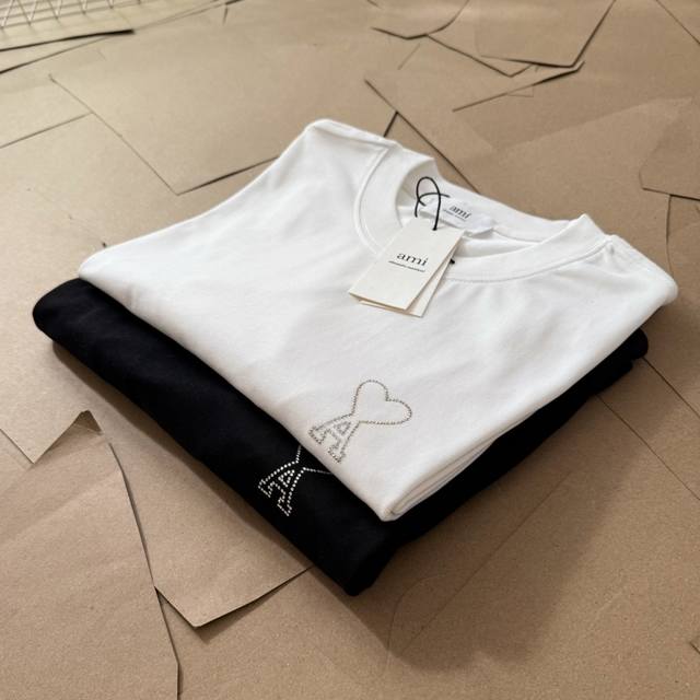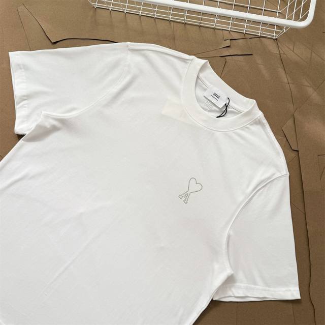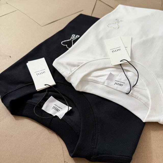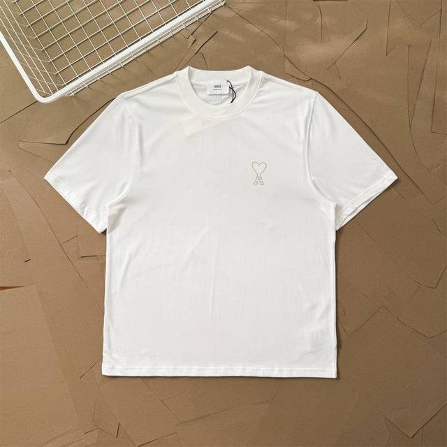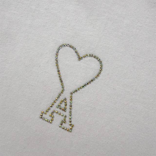 Ami 25Ss hot-drilled hollow heart front printed back embroidered short-sleeved T-shirt 107