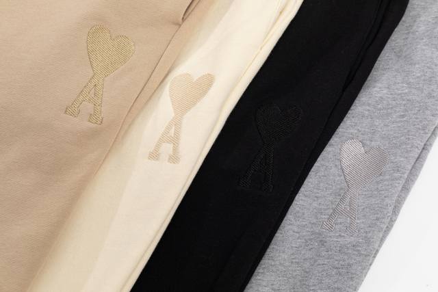 Ami Alexandre Mattiussi22 Autumn/Winter New Loose-fitting Jogger Sweatpants, Pure Cotton Oversized Sweatshirt, 400G Terry Fabric, Unisex. Colors: Black, Apricot, Gray, Khaki. Sizes: S-XL.