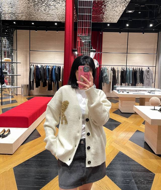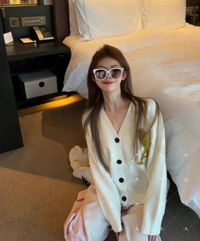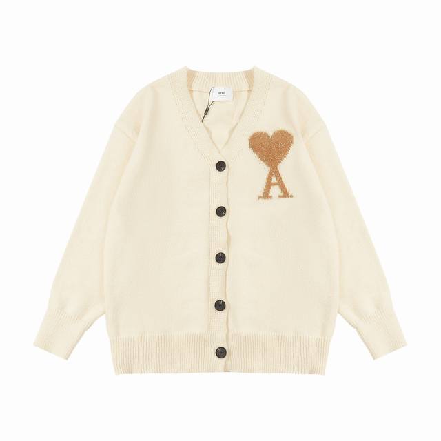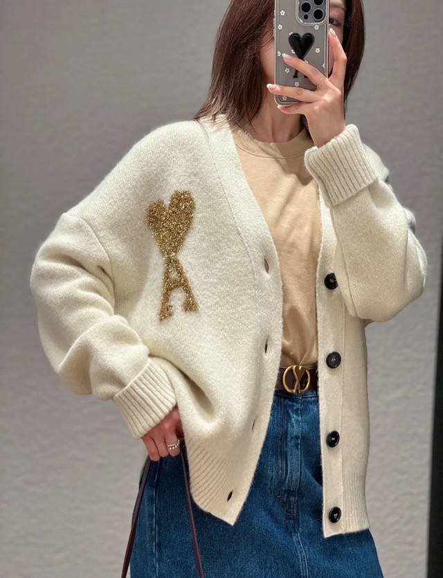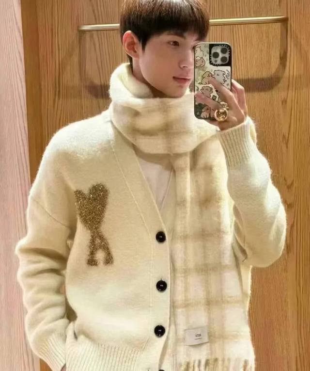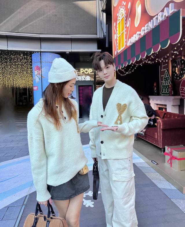 Ami Paris 24Fw Christmas Limited Edition Gold Thread Heart Logo Jacquard Couple Knit Cardigan - Top Original Version