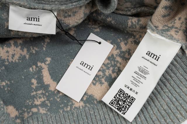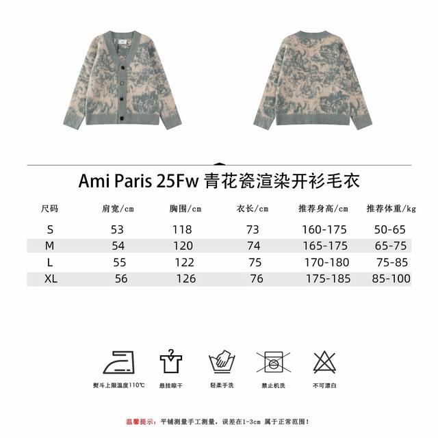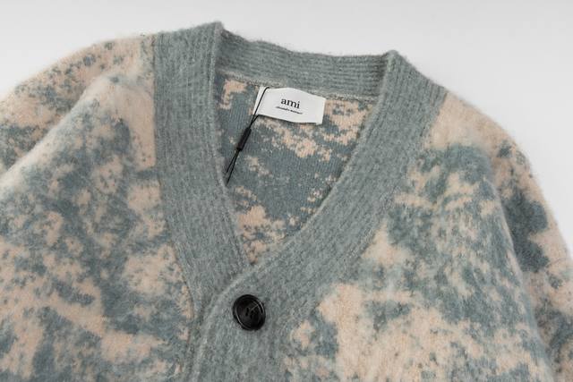 Ami paris 25Fw blue and white porcelain rendering cardigan sweater