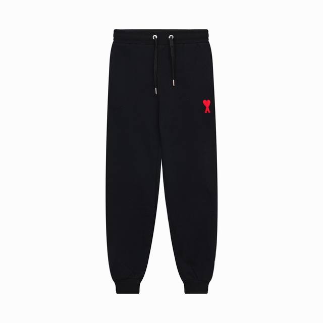 Ami Paris New Spring/Summer Heart Embroidered Towel Pants, Red Heart Sports Casual Long Pants, Drawstring Sweatpants, Custom Made, 400g Pure Cotton Fabric, Unisex Style. Colors: Black, White, Candy Pink, Sky Blue, Floral Gray, Vanilla, Apricot Blossom. Sizes: S-XL.